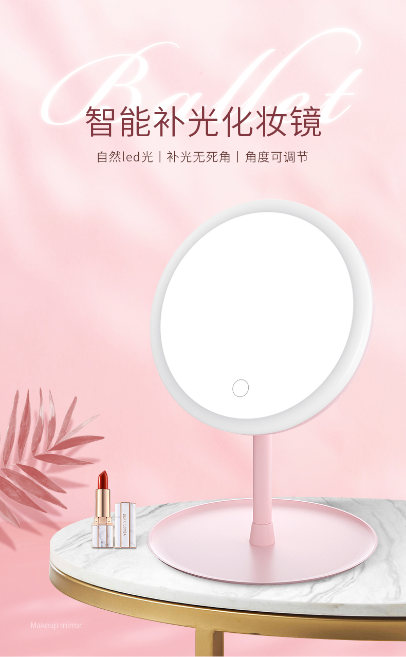 led化妆镜带灯补光宿舍桌面台式梳妆镜女折叠网红随身便携小镜子