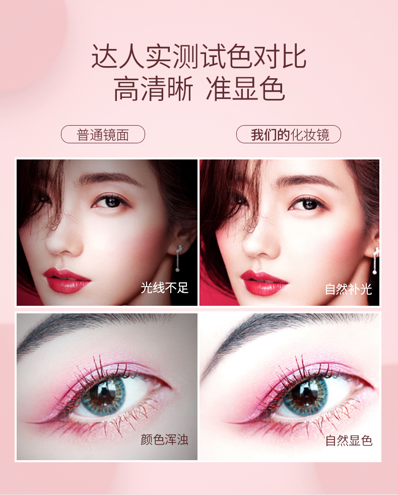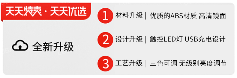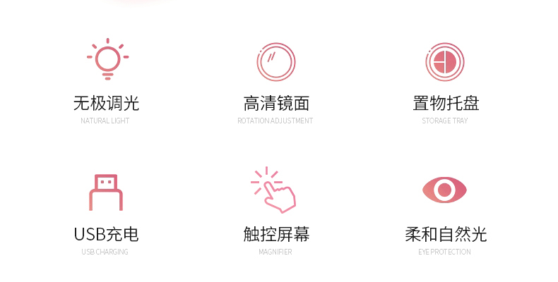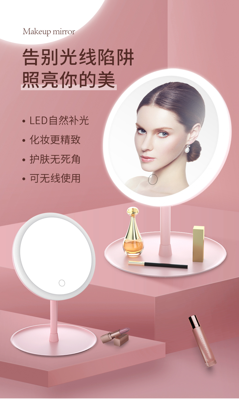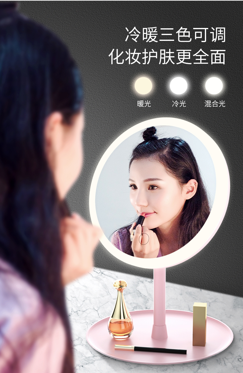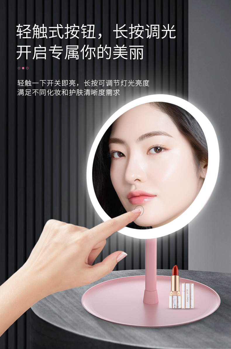 【冲鸭~快抢】臭美的宝宝看过来!采用高清镀银镜面,触控开关,三挡调光更加清晰真实,更加明亮!北欧风格,时尚简约,折叠设计,小巧便携,随时随地补妆【赠运费险】