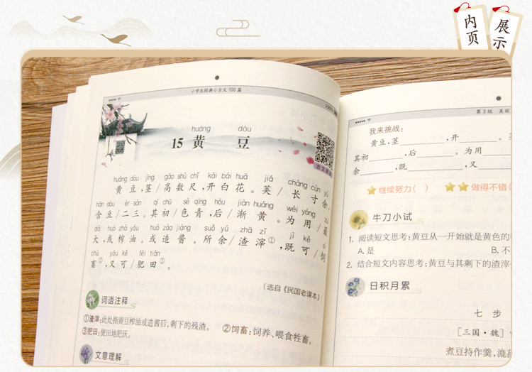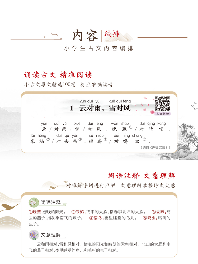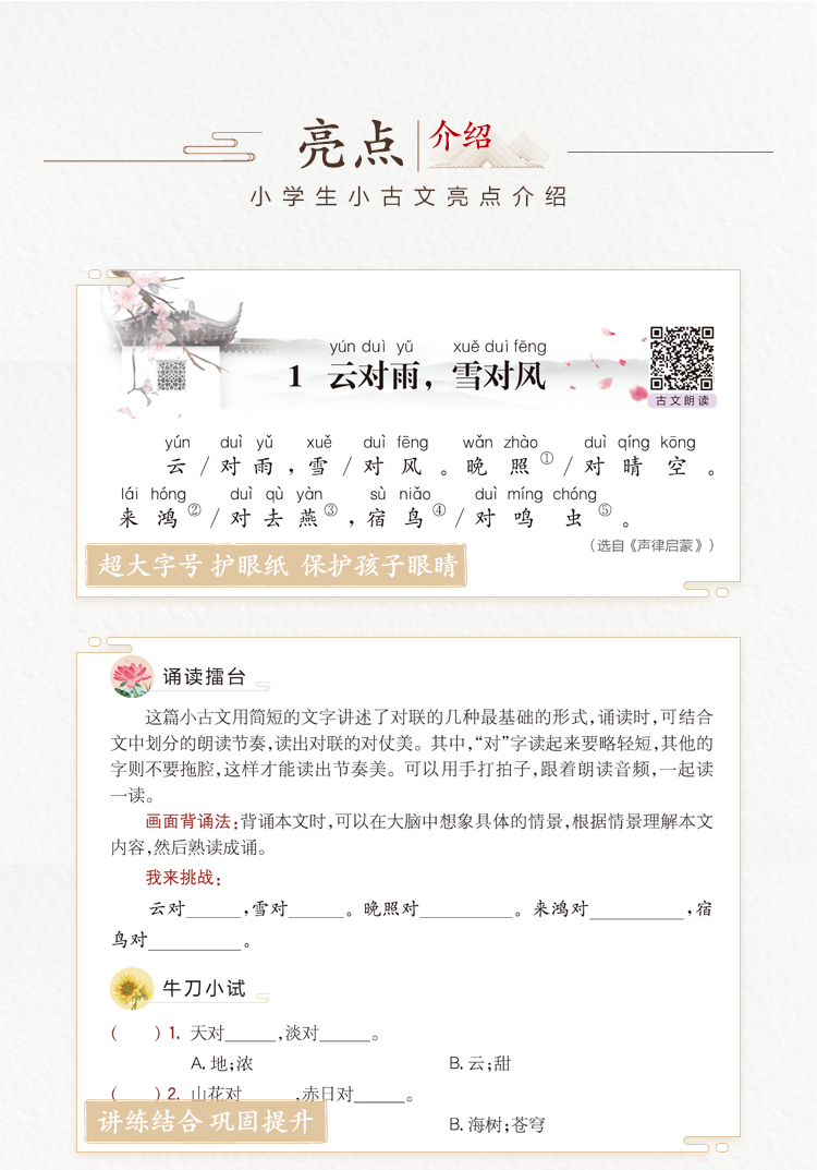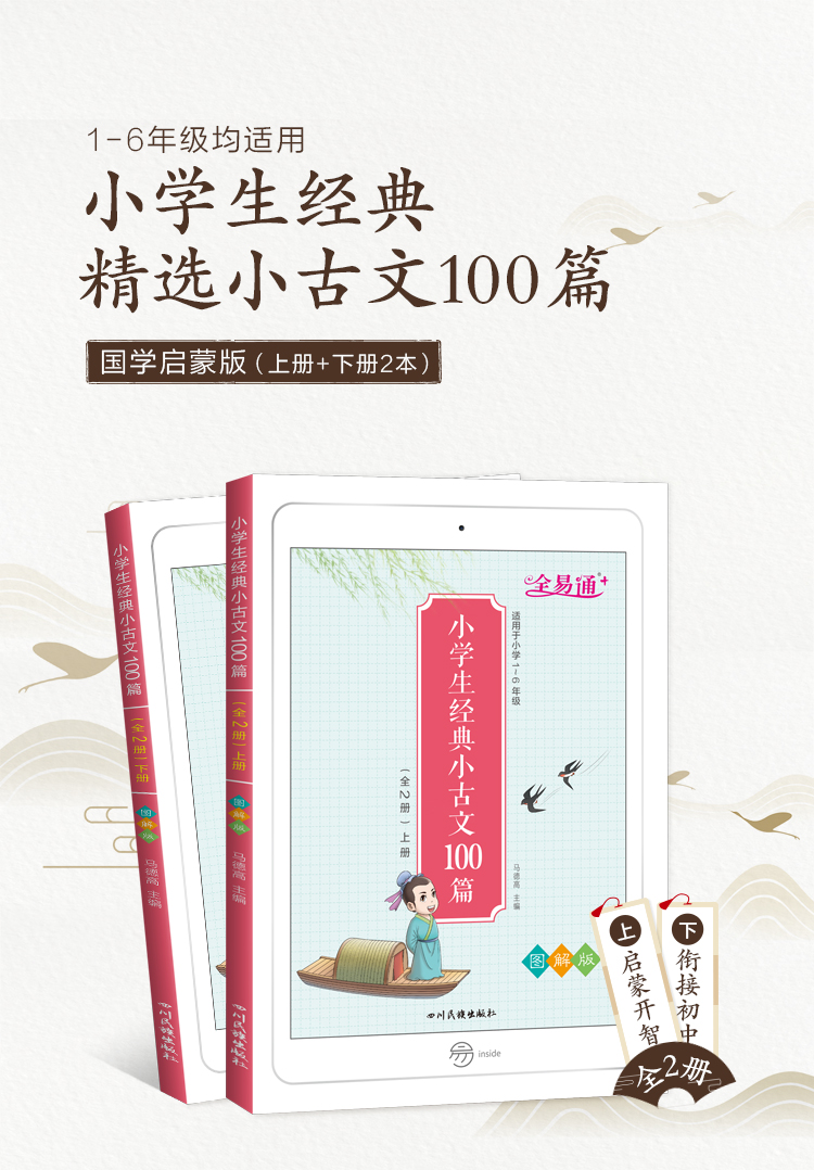 语文老师推荐,1-6年级小学生必背小古文2册,拼音版,名师指导解读,更有拓展内容丰富孩子知识,课后同步训练,巩固学习内容。