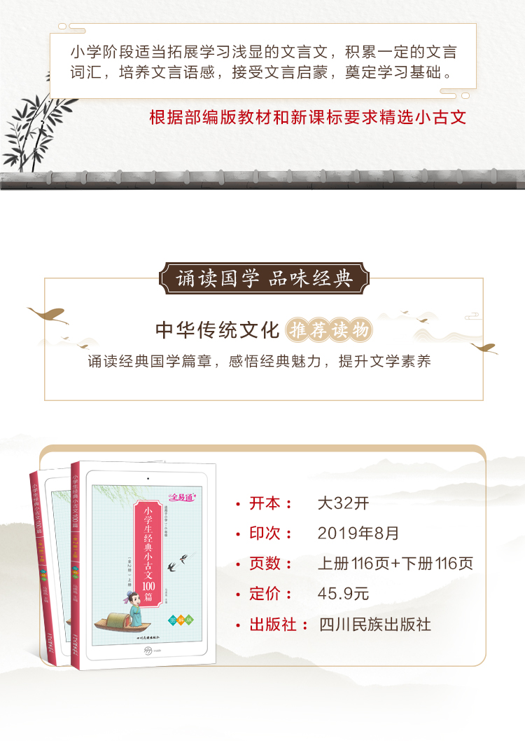 全套2册 小学生经典小古文100篇上册下册小学同步一二三四五六年级123456年级必备语文阅读训练必背100课国学启蒙诵读古诗文课外书