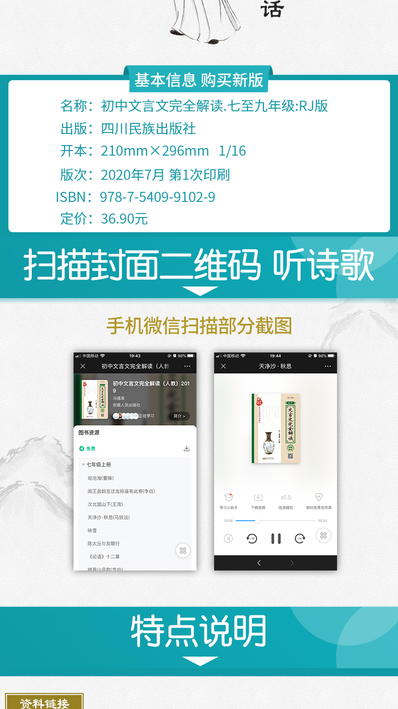 初中语文重点难点攻破,更全面,更简单,更细,让孩子更容易搞懂,运用自如,扫码即听,7-9年级中学生,语文阅读与训练,必背古诗文,古文对译注释,名师精细解读,帮你轻松迎战高考!