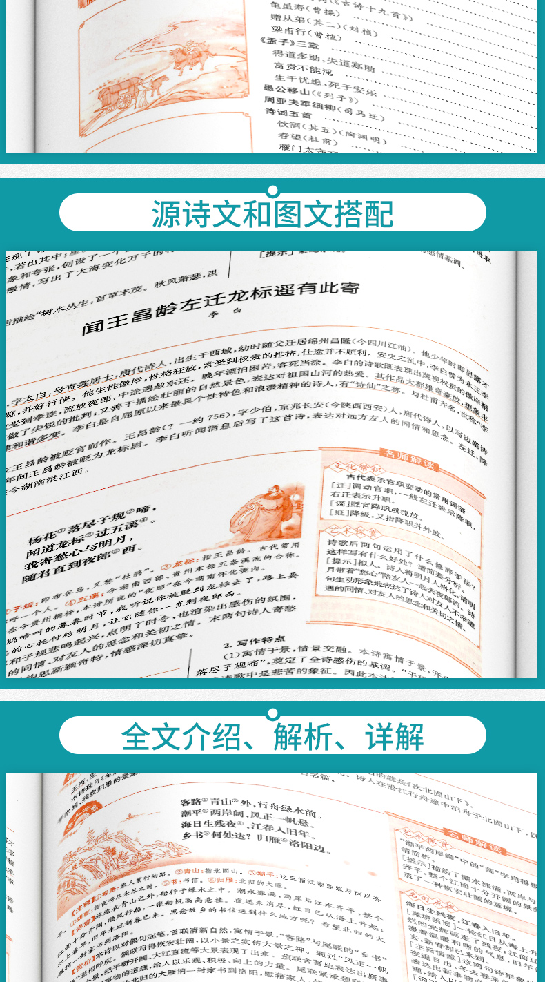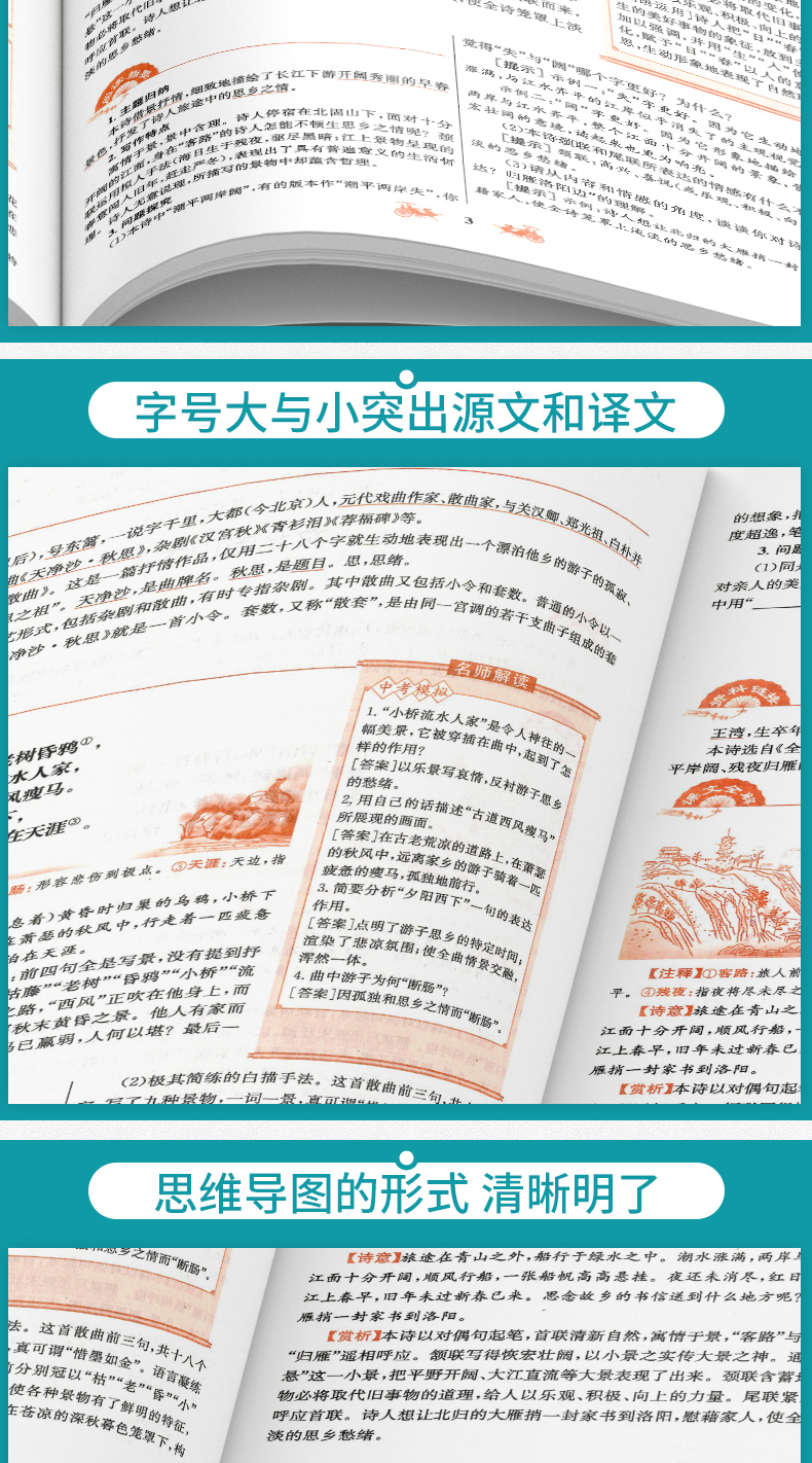 2020新版 初中文言文完全解读7-9年级人教版 中学生语文阅读与训练初中生必背古诗文132篇译注及赏析全解全析一本通中考古诗词大全