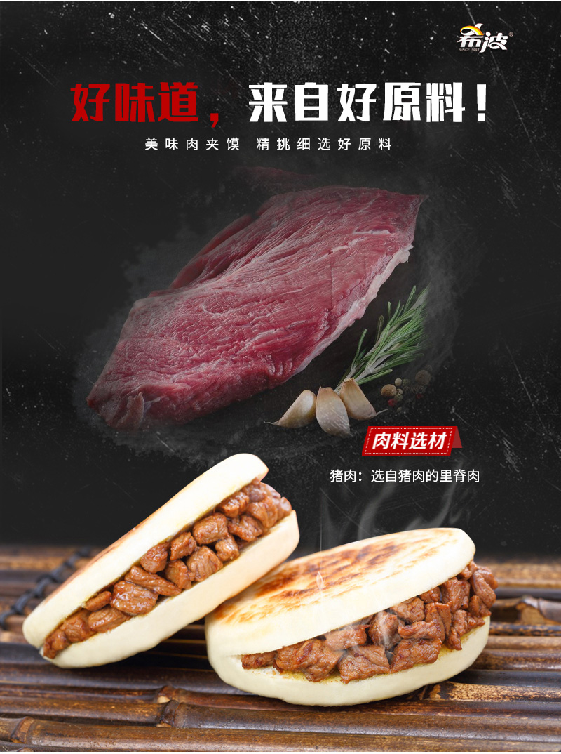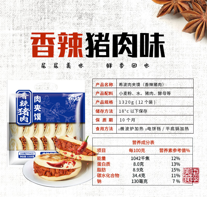 【正品保证】希波肉夹馍香辣猪肉夹肉饼,精挑细选好原料,精心制作,鲜香味美,层层美味~