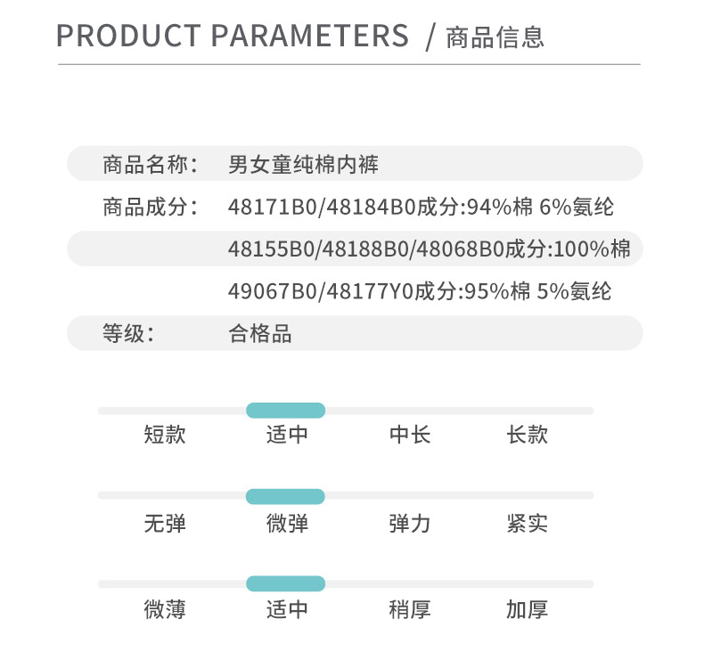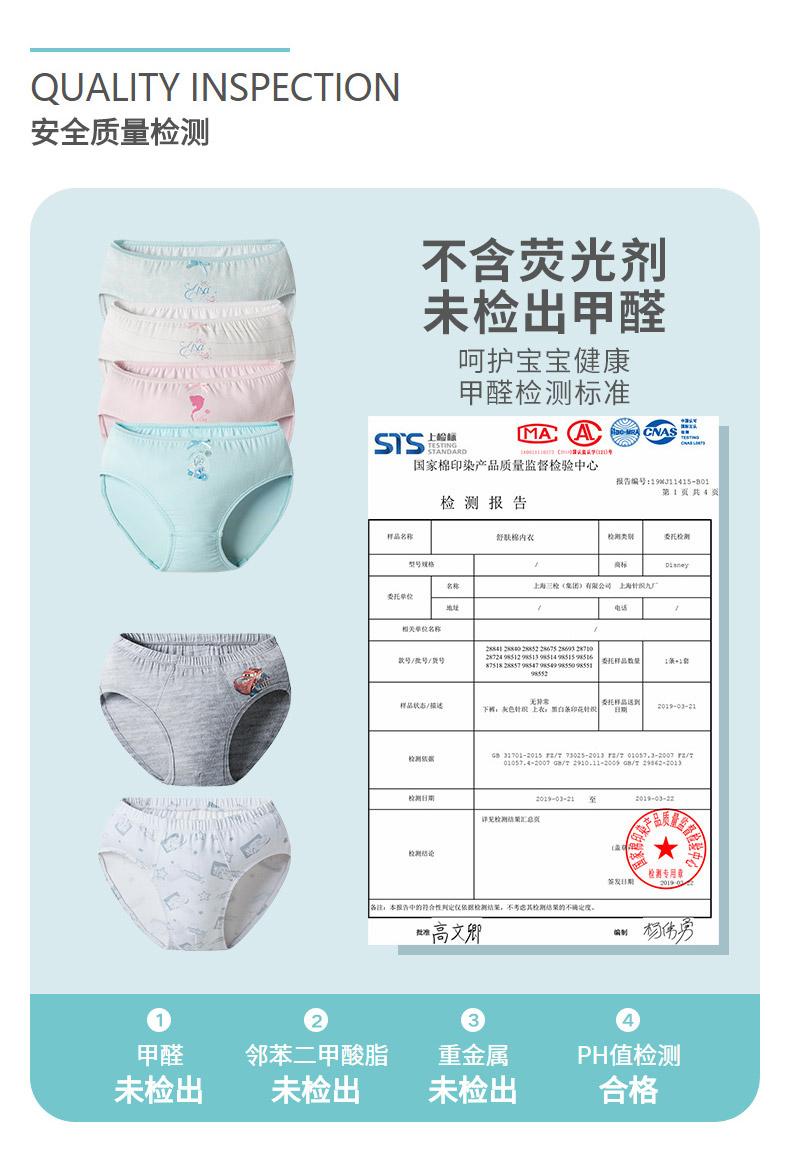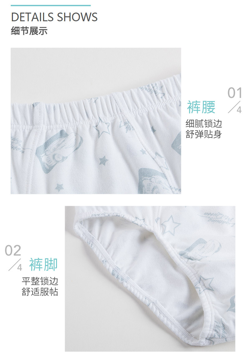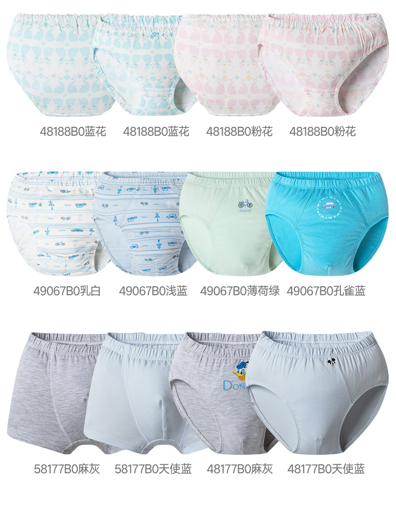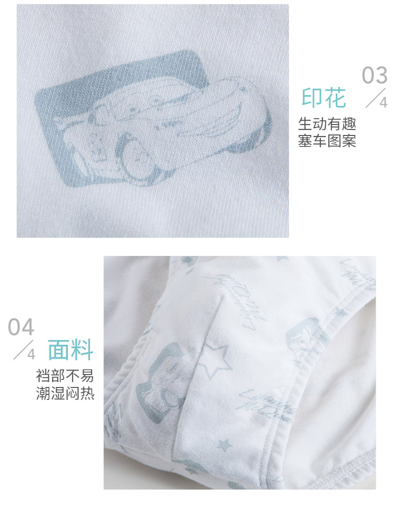 纯棉无甲醛面料,贴合肌肤,给宝宝更舒适的呵护,透气性佳,排汗速干,弹力十足,抗拉扯,平角三角款式多样,宝宝也喜欢啊!
