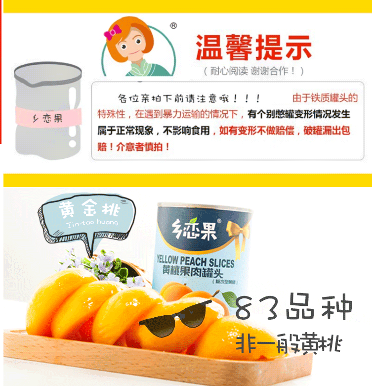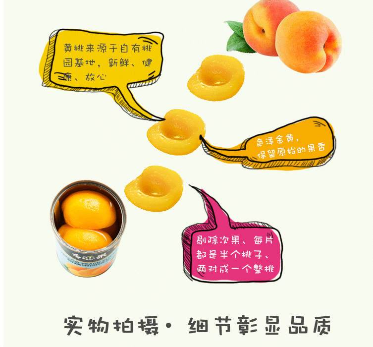 【董小妹旗舰店】精选新鲜黄桃!对半切,酸甜可口,Q弹滑爽!从采摘到装罐仅仅6小时,保鲜更锁鲜!保证吃到嘴巴里满满的新鲜感!天然营养健康,不添加防腐剂,给孩子们放心享用!五大罐~赶紧抢!