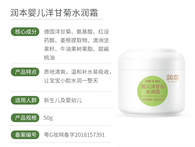 润本儿童面霜婴儿润肤乳宝宝擦脸保湿滋润补水润肤女孩正品护肤品