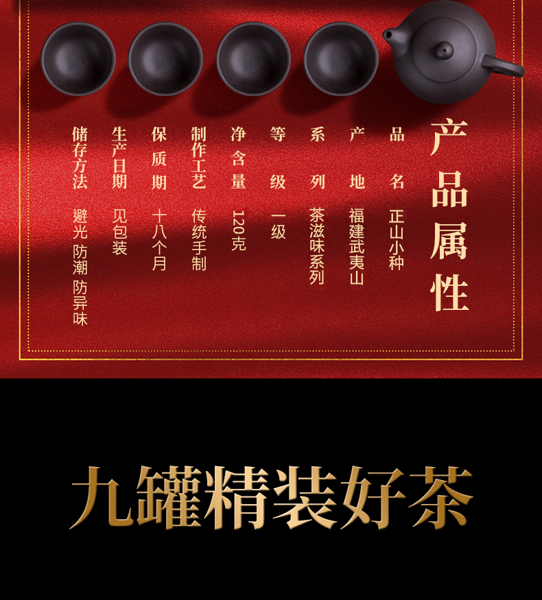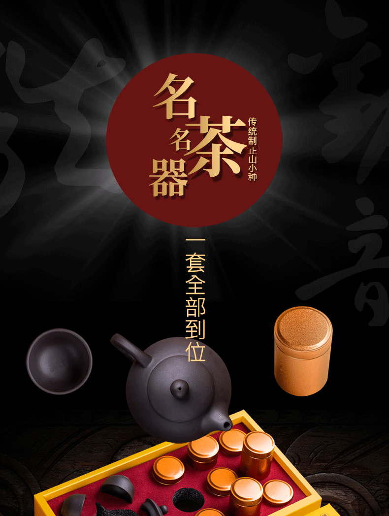 正山小种茶叶+1壶4杯礼盒装 含茶具新茶武夷山红茶小金罐装茶福利
