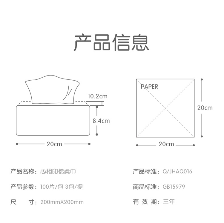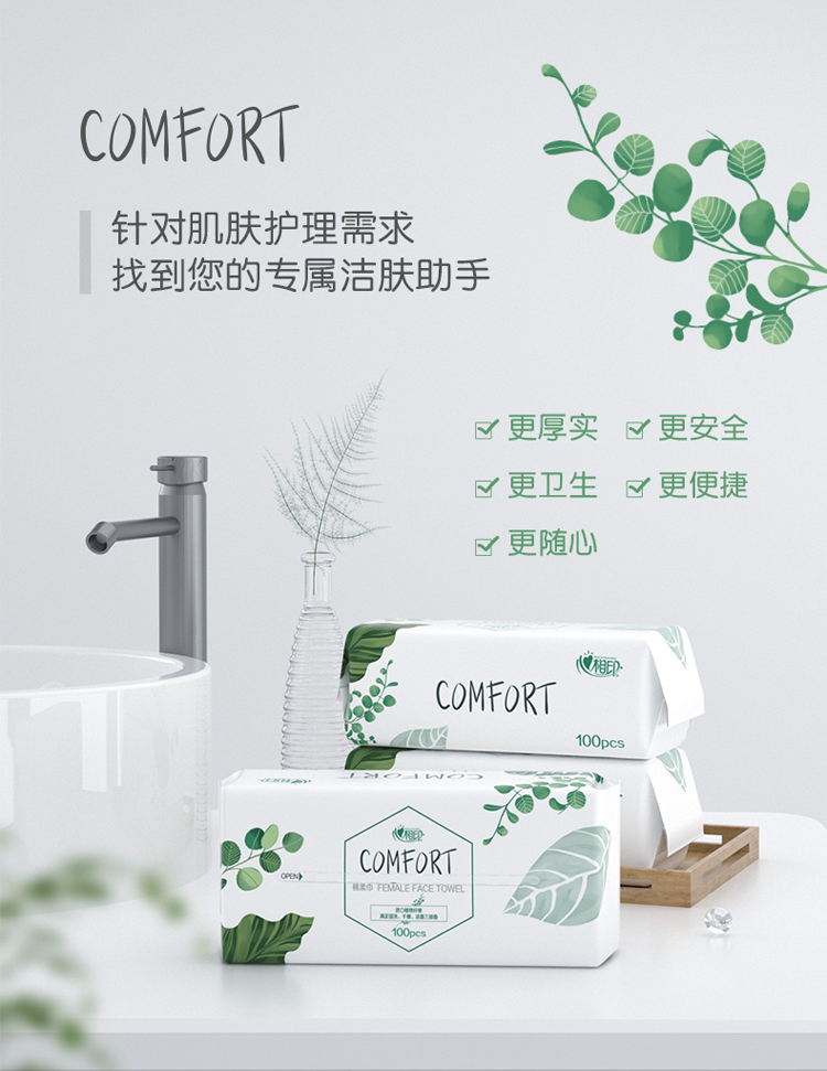 心相印洗脸巾 棉柔巾 一次性洗脸巾洁面巾干湿两用巾100抽*3包