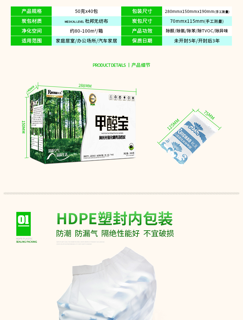 锐巢高端活性炭包家用新房装修除甲醛吸甲醛除味去甲醛活性碳包