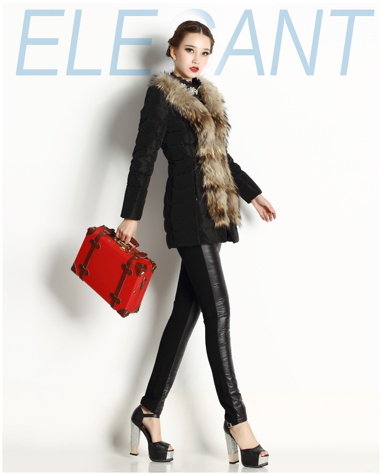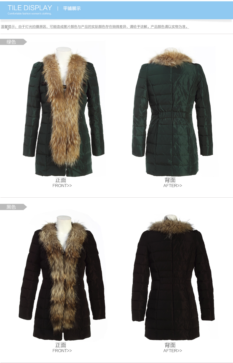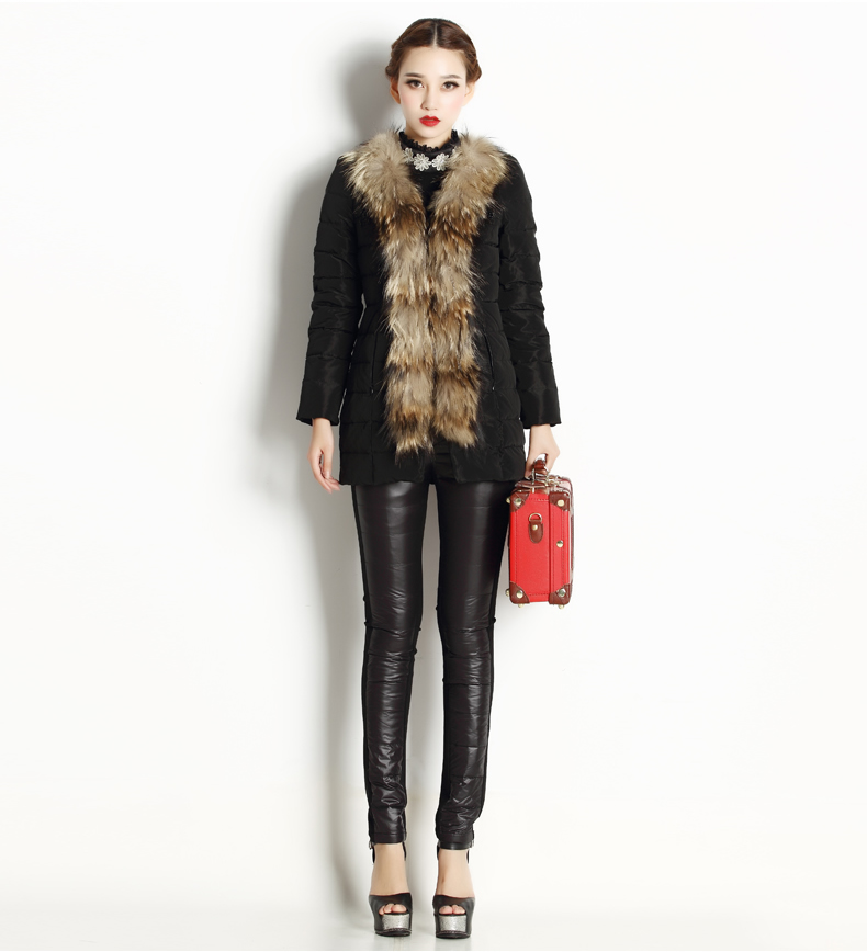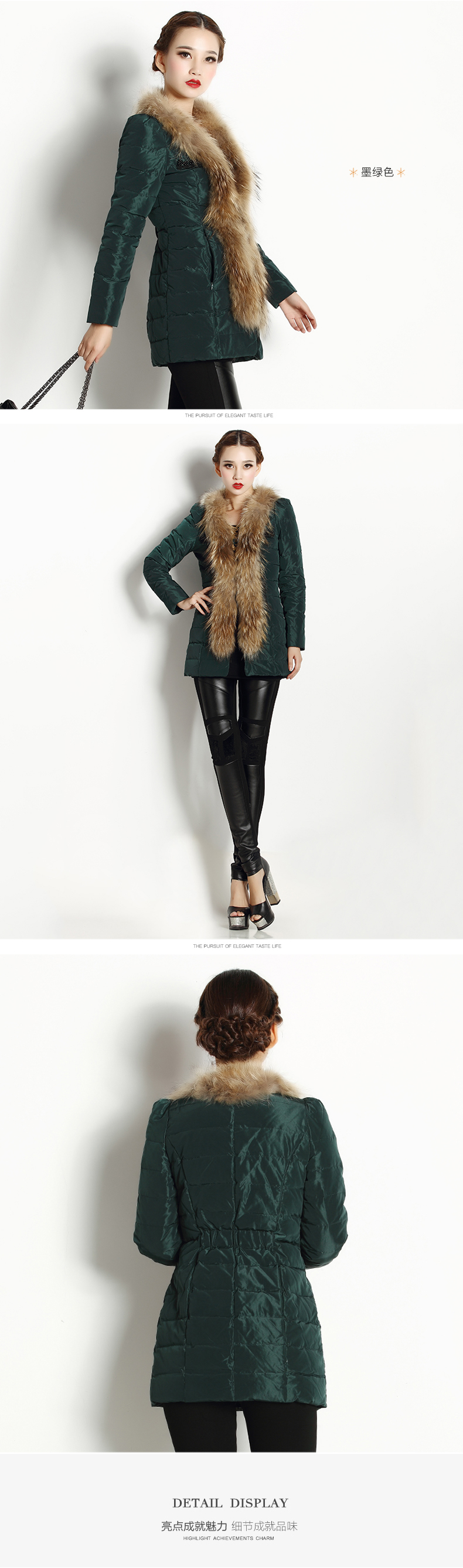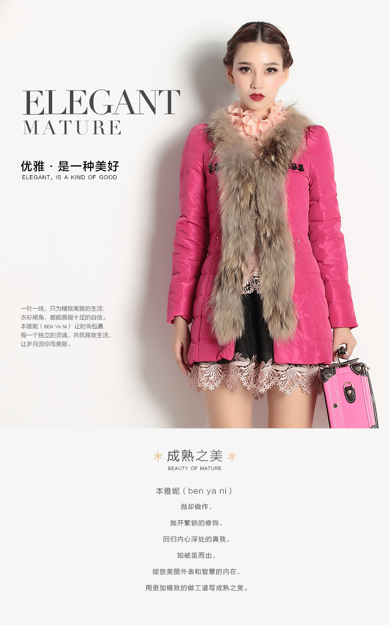 本雅妮冬季新款中长款修身羽绒服女装外套长毛领