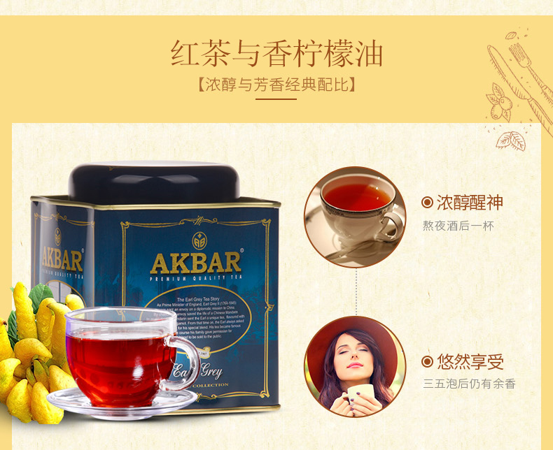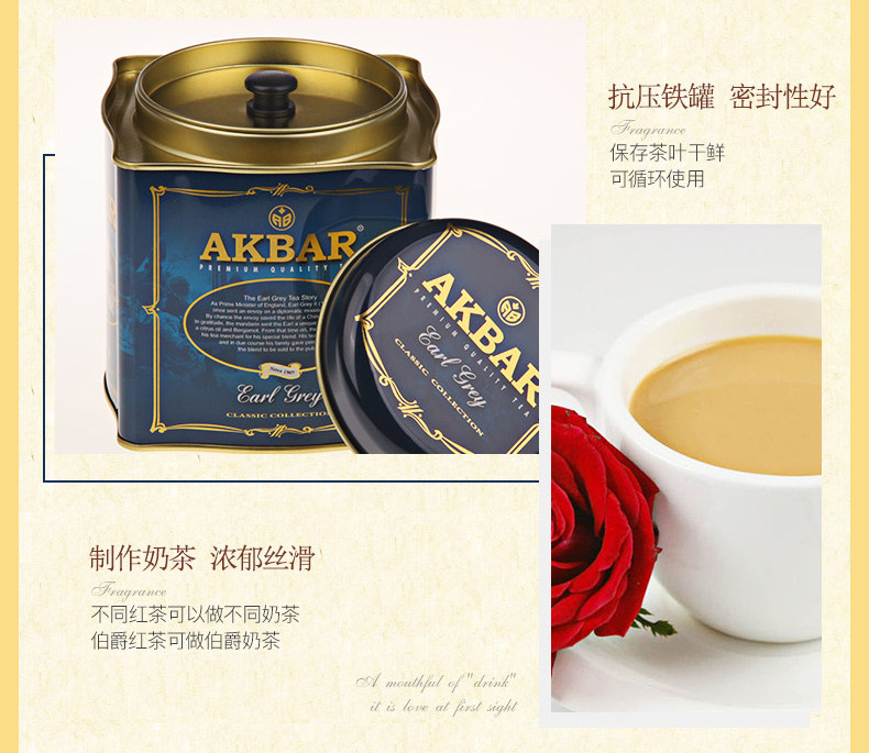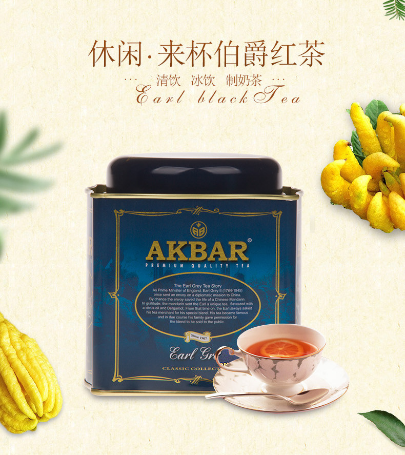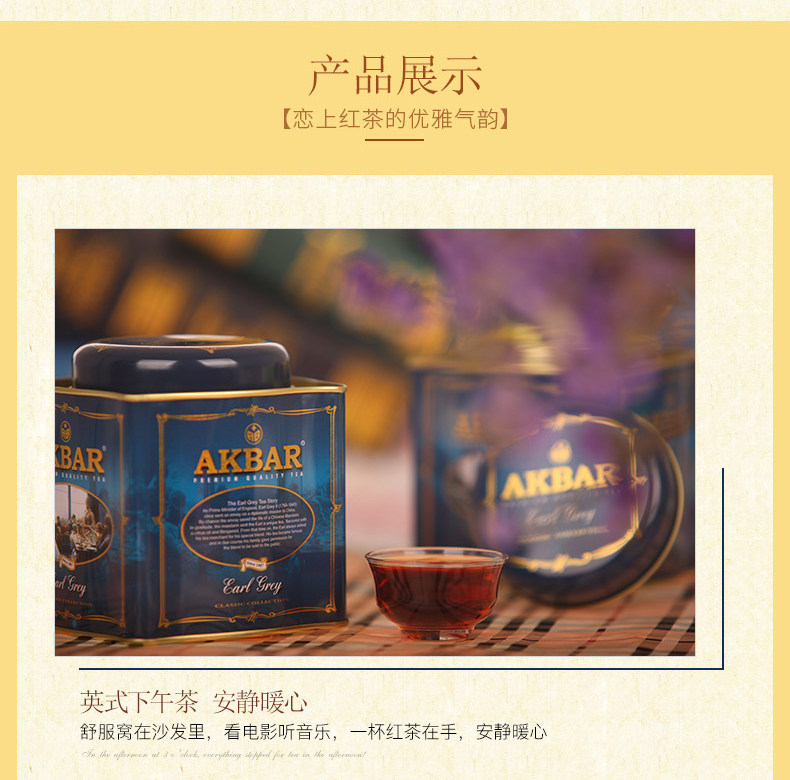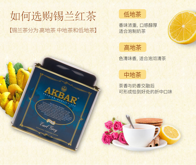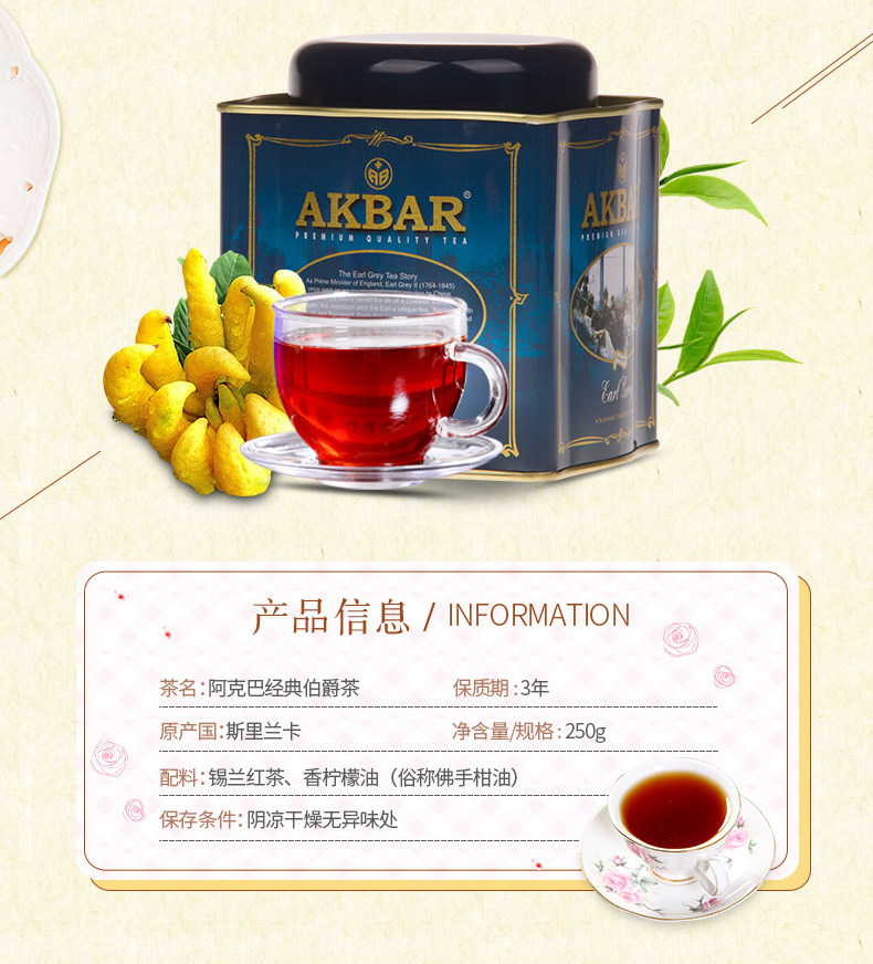 AKBAR锡兰茶叶原装进口罐装250g斯里兰卡英式茶可做奶茶伯爵红茶