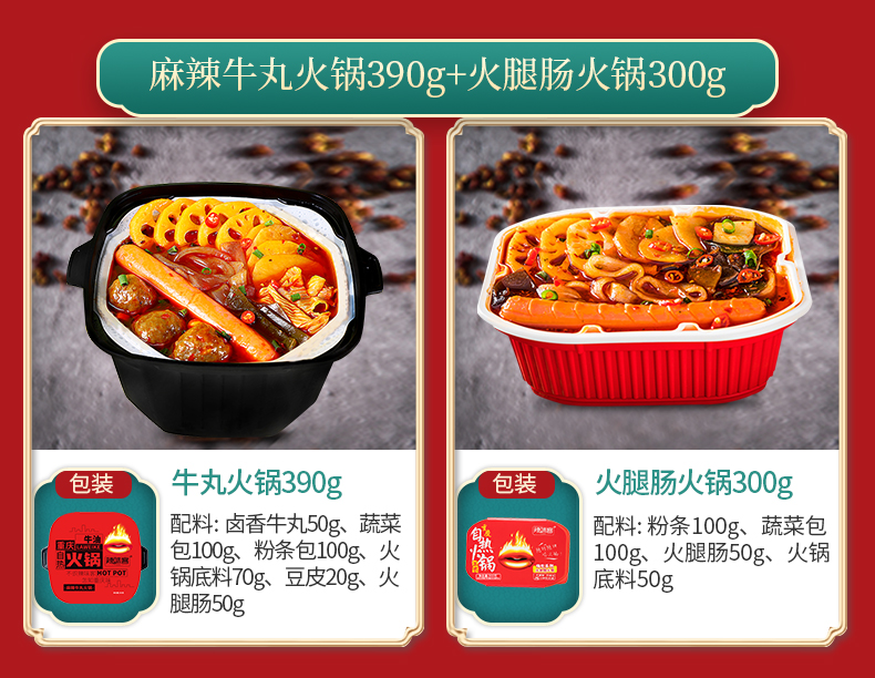 精心炒制浓香牛油,食材丰富,荤素搭配,不用火不用电,只需一杯冷水,等待15分钟,享受地道四川火锅【赠运费险】