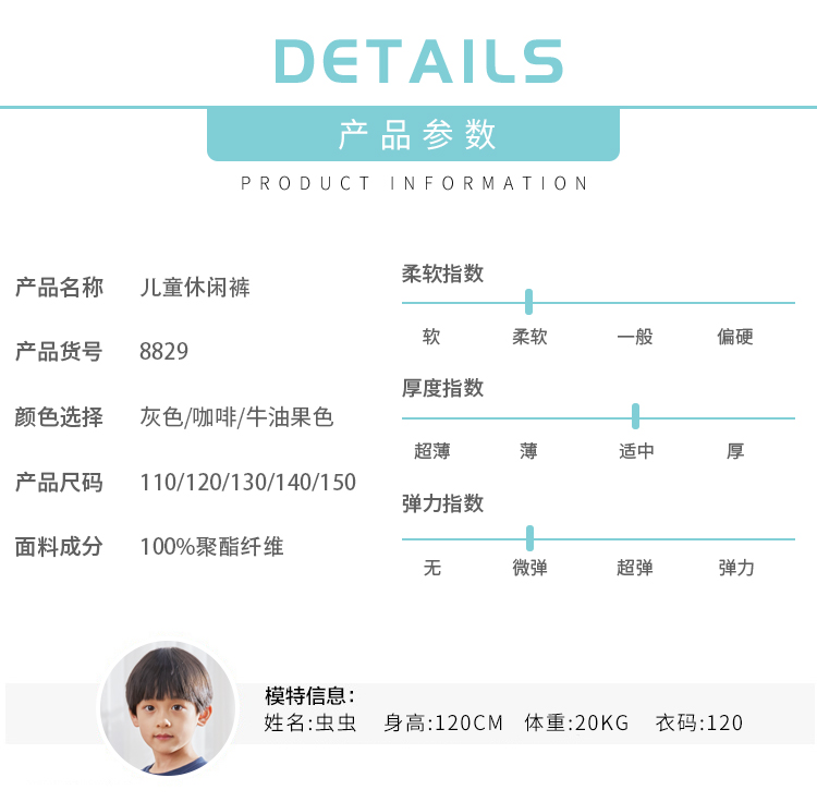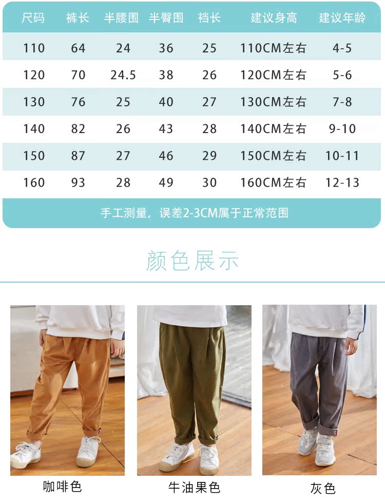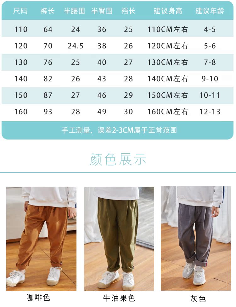 新品上市,柔软舒适,呵护宝宝,弹性腰部,宽松脚裤,时尚口袋,牢固车线。精选优质面料,柔软亲肤,穿着舒适,让孩子轻松搭出帅气行装。