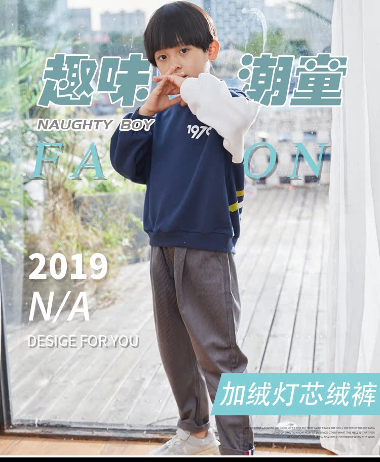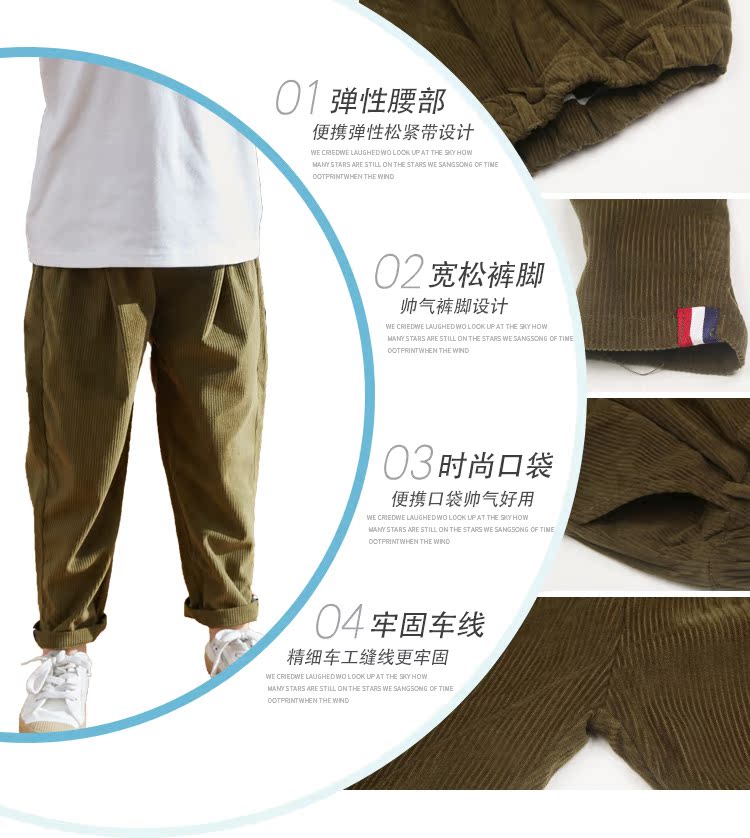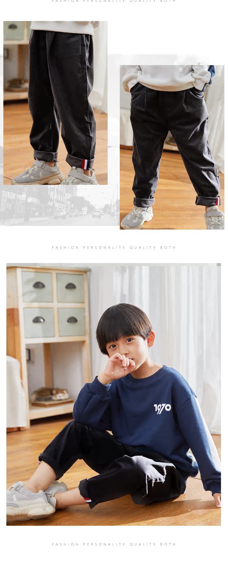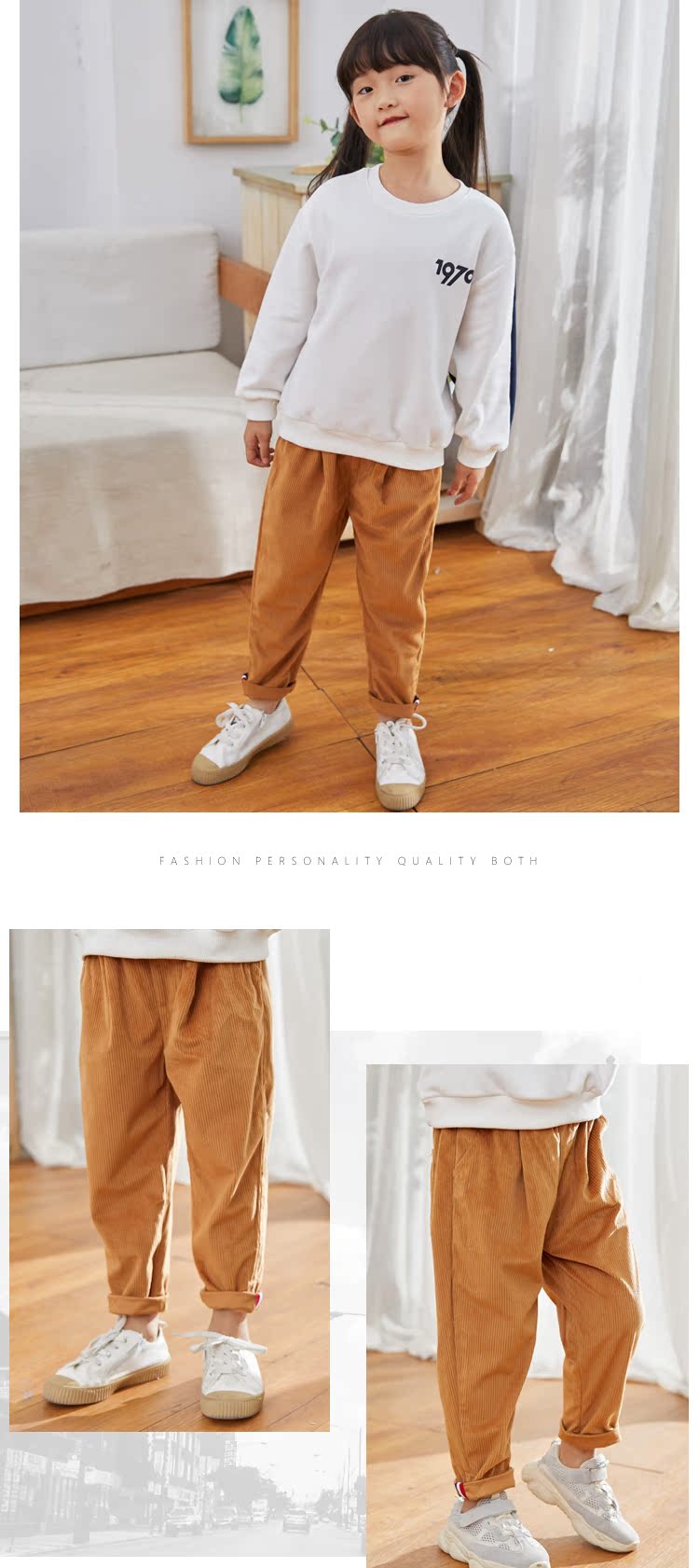 奇妙豆儿童秋冬灯芯绒裤中大童裤子2019新款宽松休闲男女同款裤