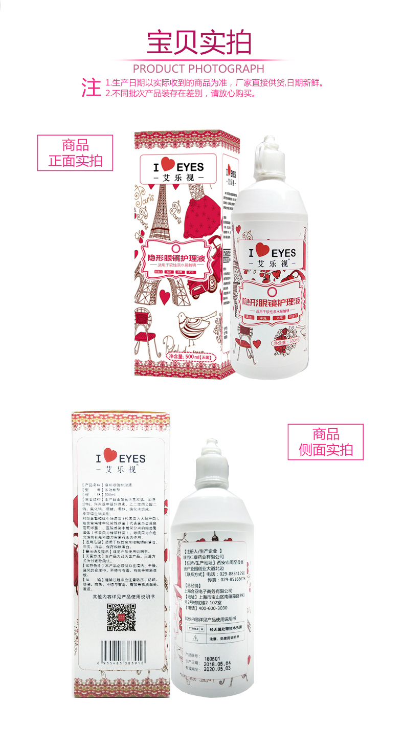 送镜盒】艾乐视隐形美瞳清洗药水近视眼镜护理液500+120ML去蛋白