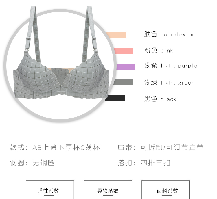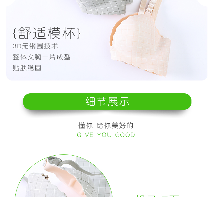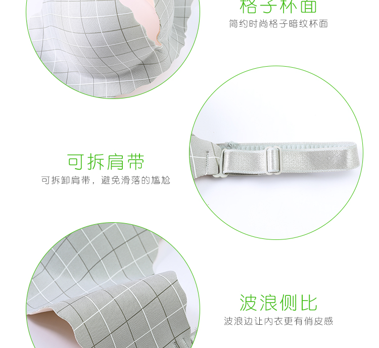 美国芭淑姿,超高评分。一片式格子款式,舒适无钢圈,交叉型小背心式设计,既性感活力,又没有肩带下滑的烦恼,穿衣百搭不尴尬!