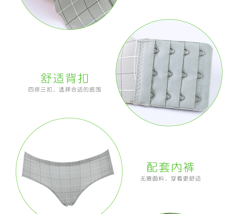 美国芭淑姿【直营正品】一片式格子文胸套装无钢圈厚薄款女士内衣