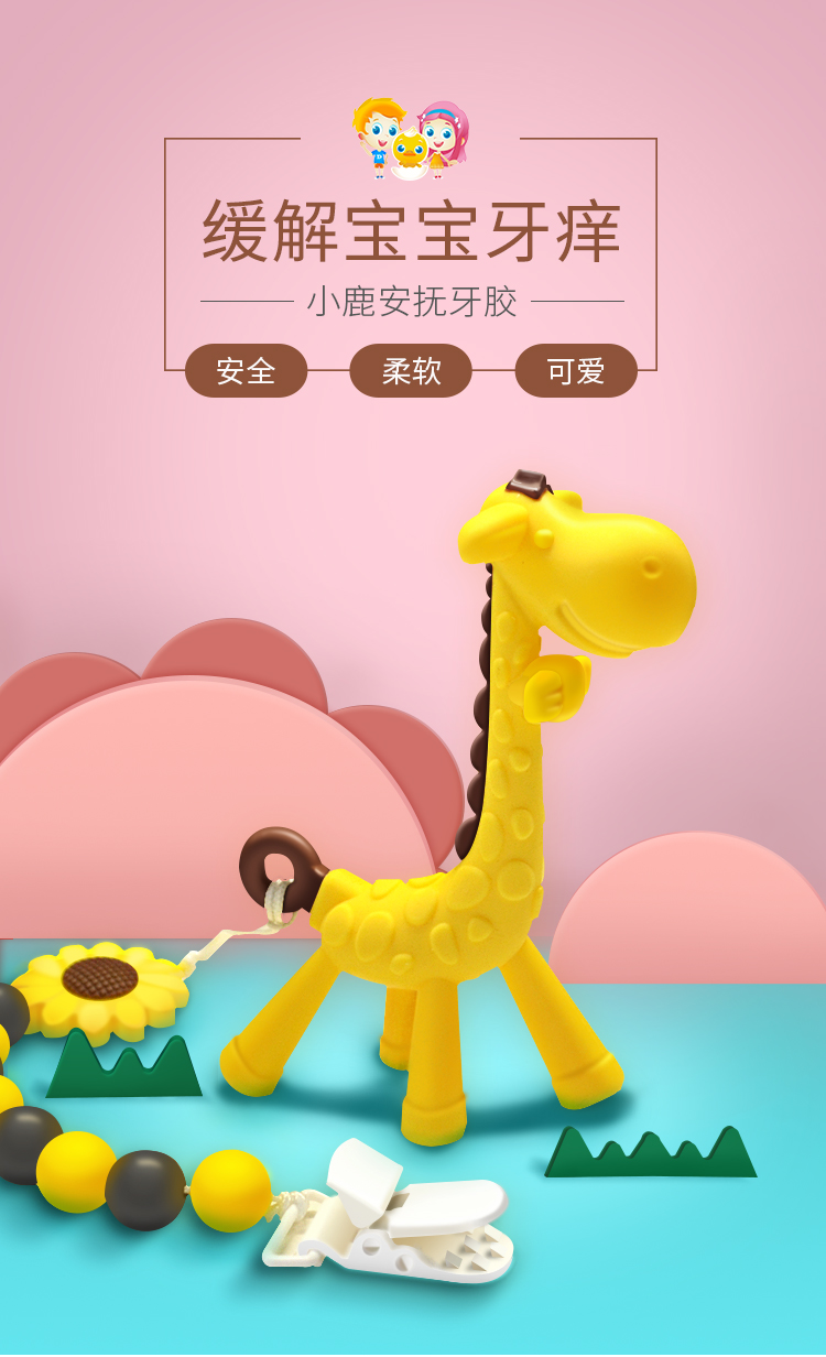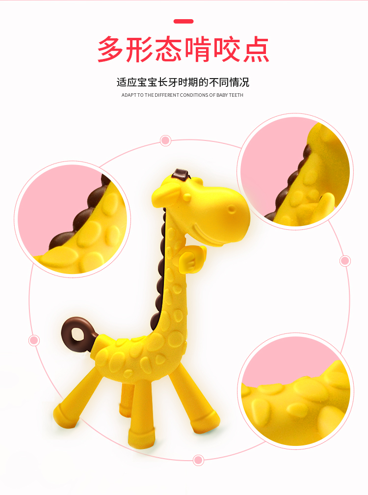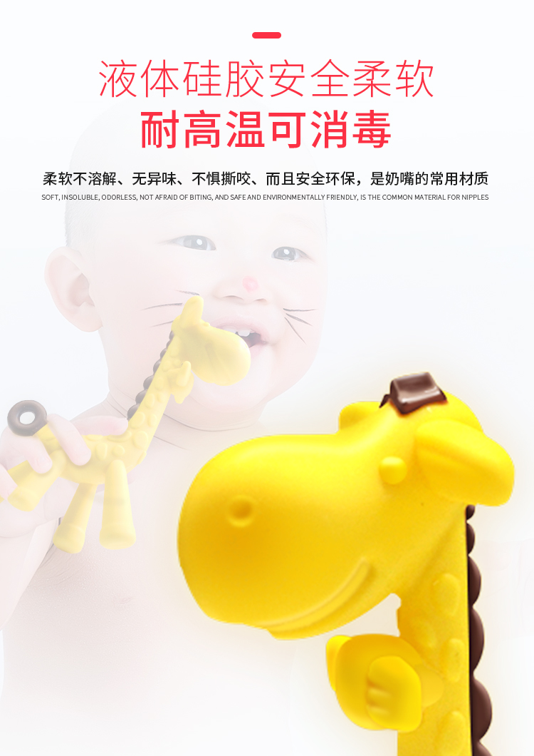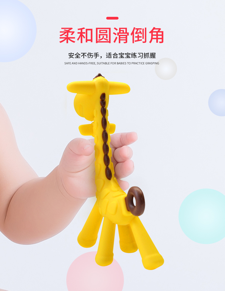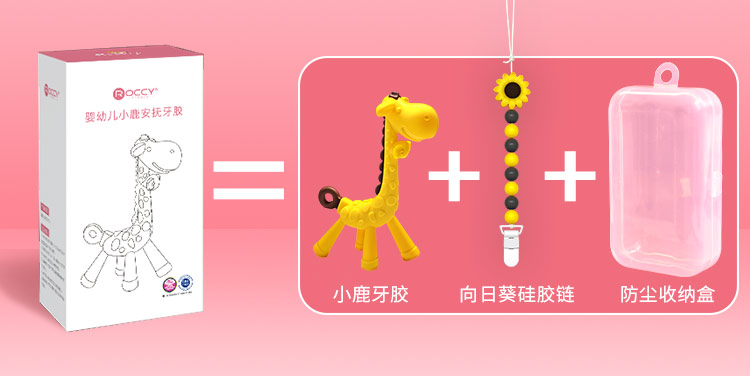 ROCCY牙胶婴儿磨牙棒宝宝硅胶玩具 长颈鹿小鹿牙胶磨牙神器可水煮