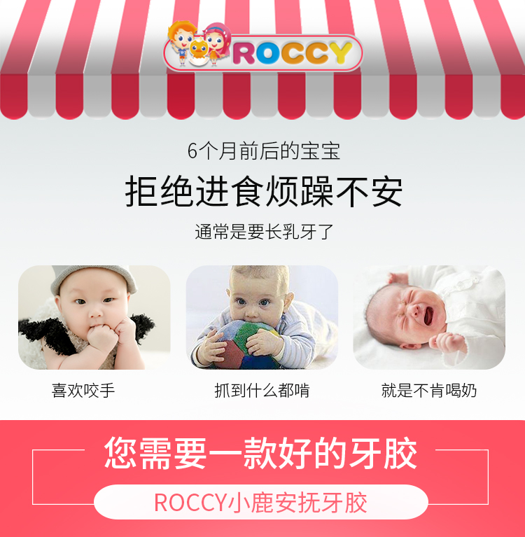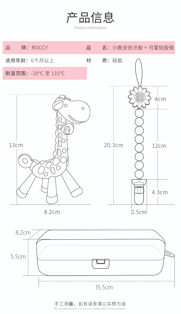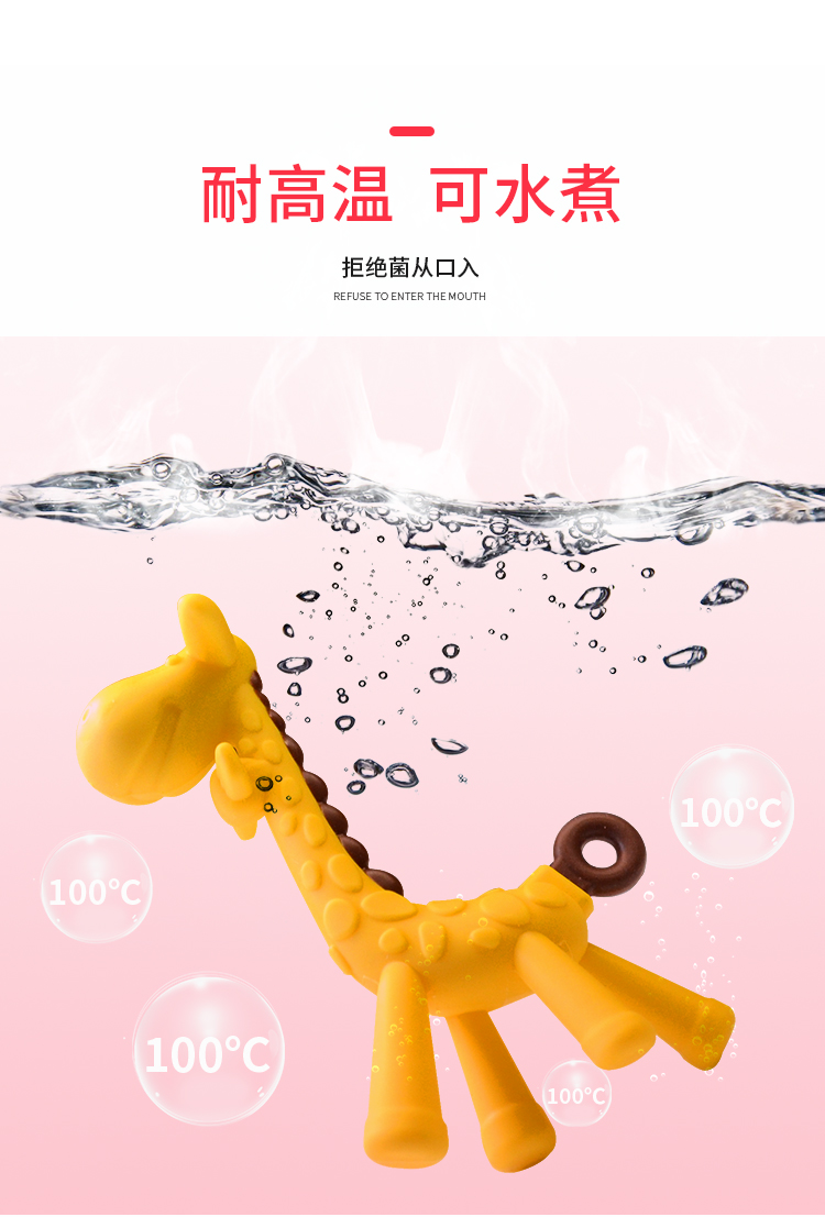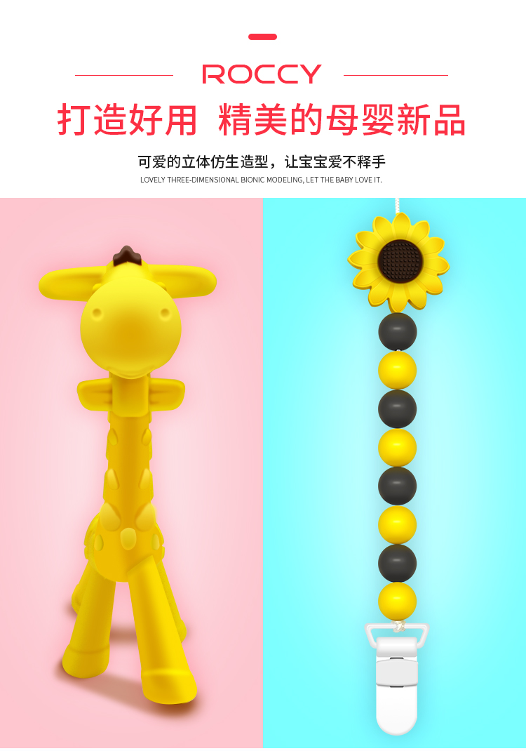 ROCCY牙胶婴儿磨牙棒宝宝硅胶玩具 长颈鹿小鹿牙胶磨牙神器可水煮