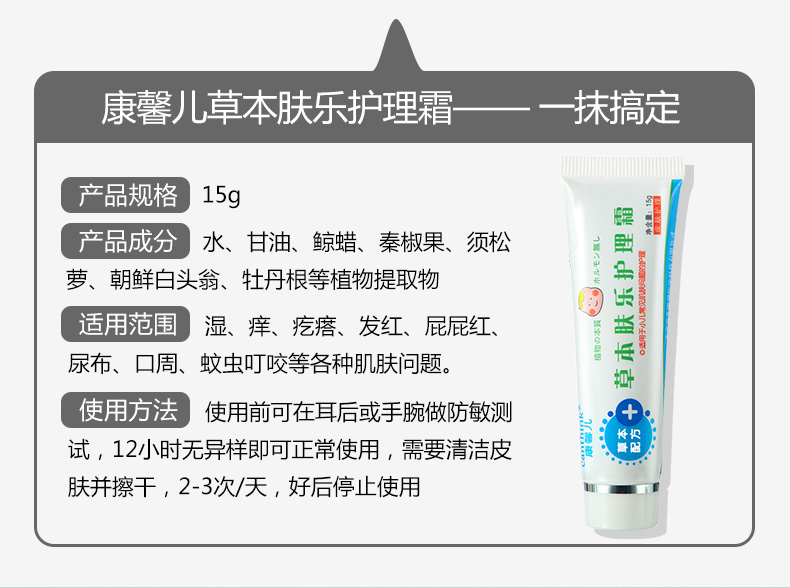 康馨儿草本肤乐霜护理霜婴儿肤乐护理霜湿痒膏修复缓解湿痒疹子膏