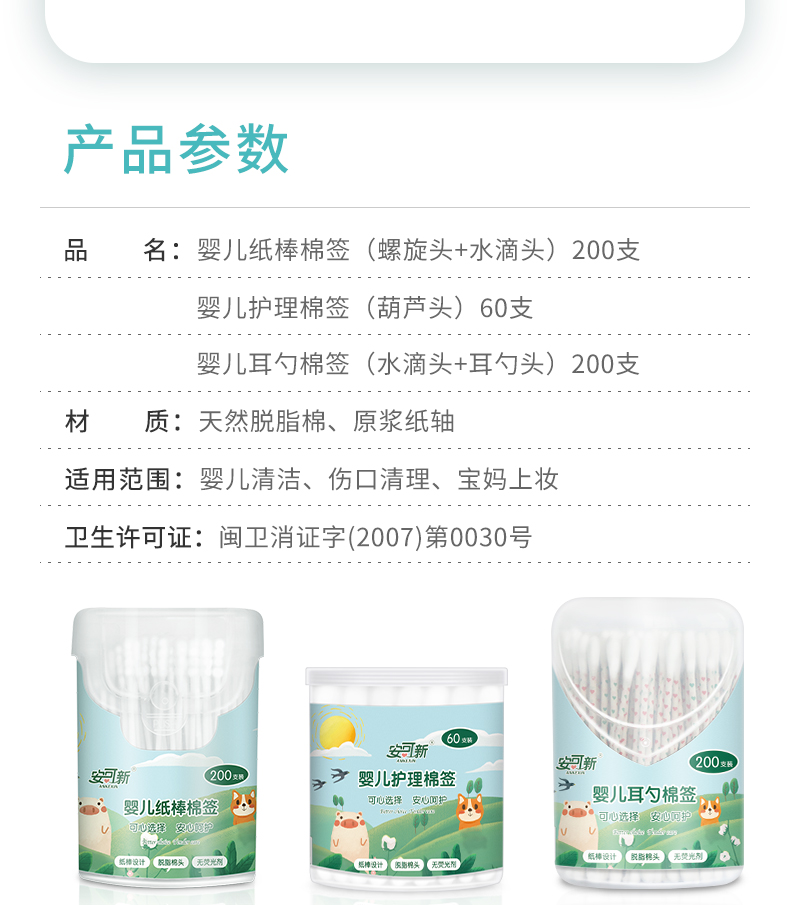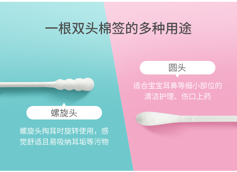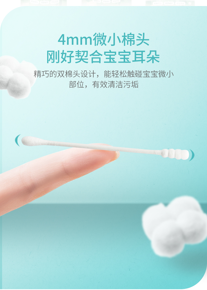 安可新婴儿棉签超细宝宝专用掏耳幼儿鼻屎新生儿一次性无菌棉签