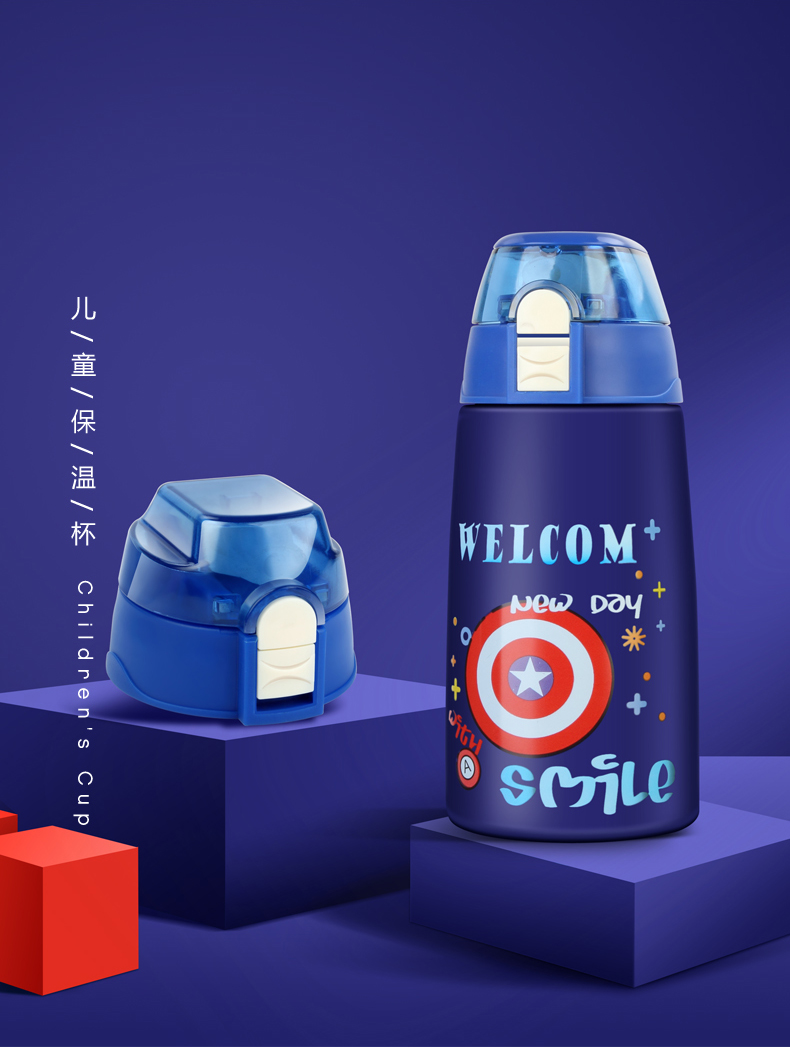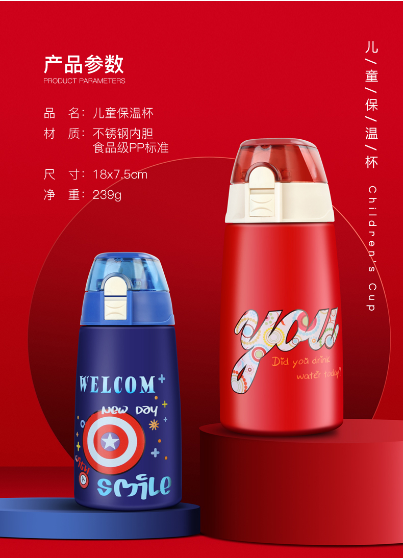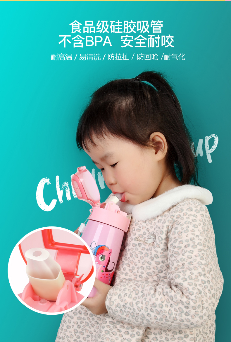 顶优优儿童保温杯带吸管学饮男女水壶小学生防摔宝宝幼儿园鸭嘴杯