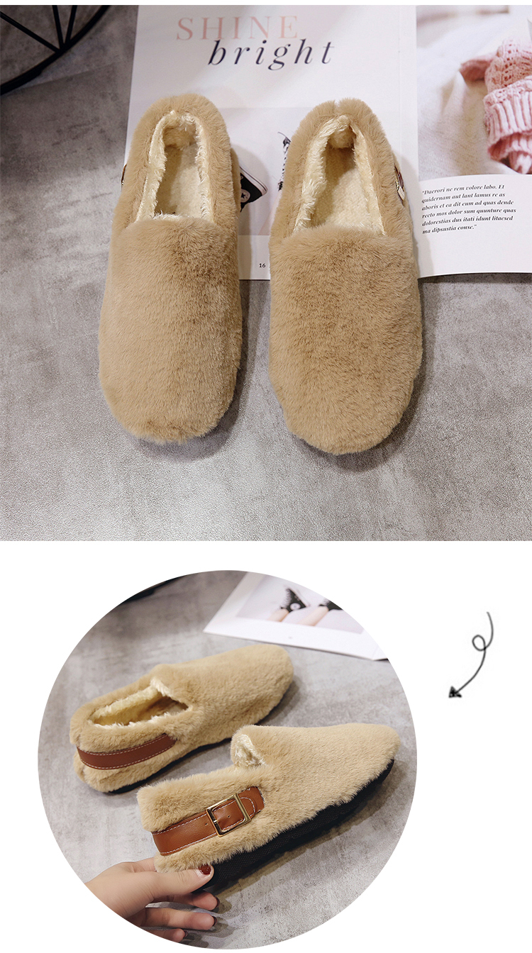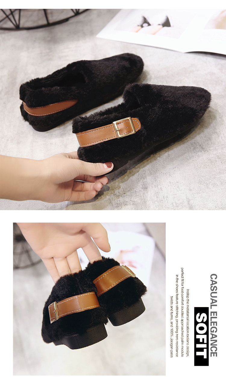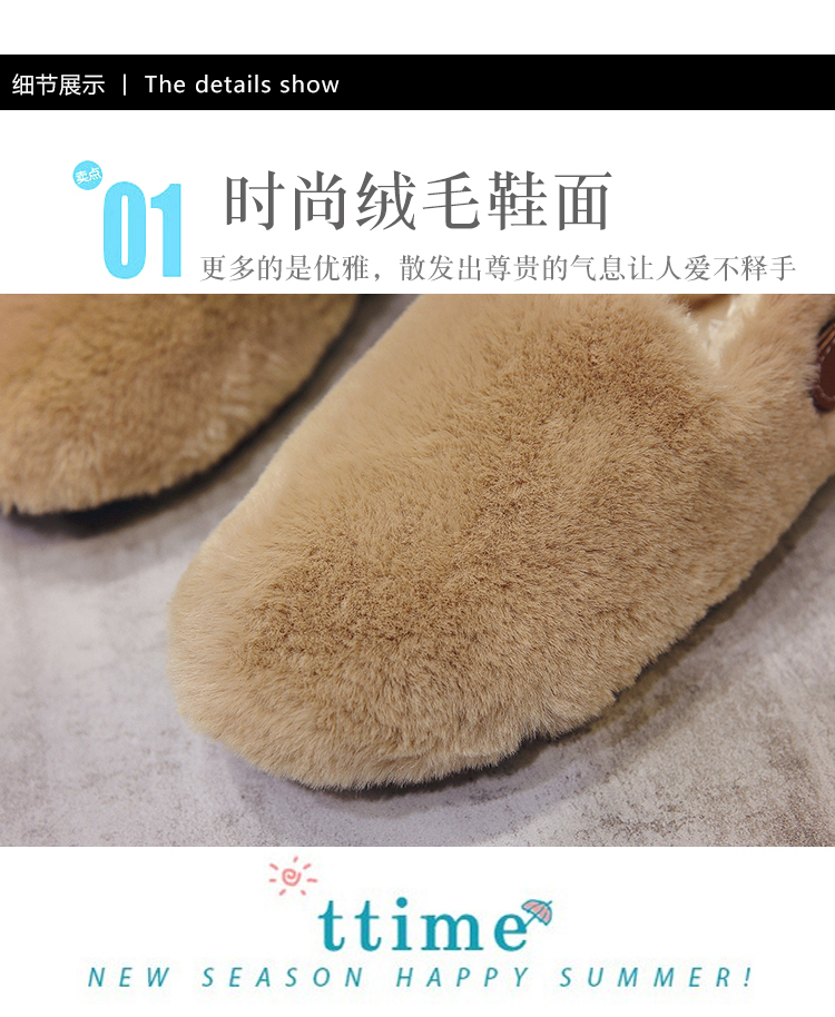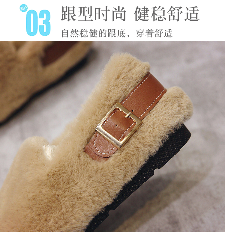 皮带扣装饰卷毛白色毛毛鞋女秋冬圆头懒人一脚蹬羊羔毛棉羊毛一体