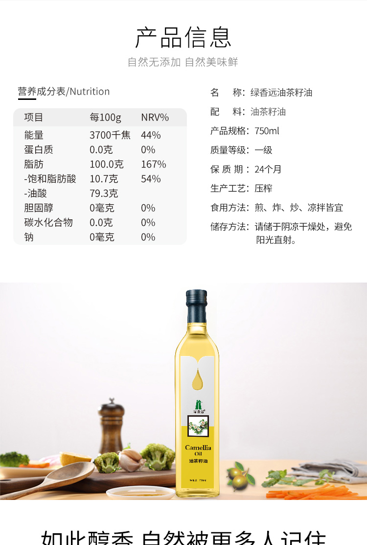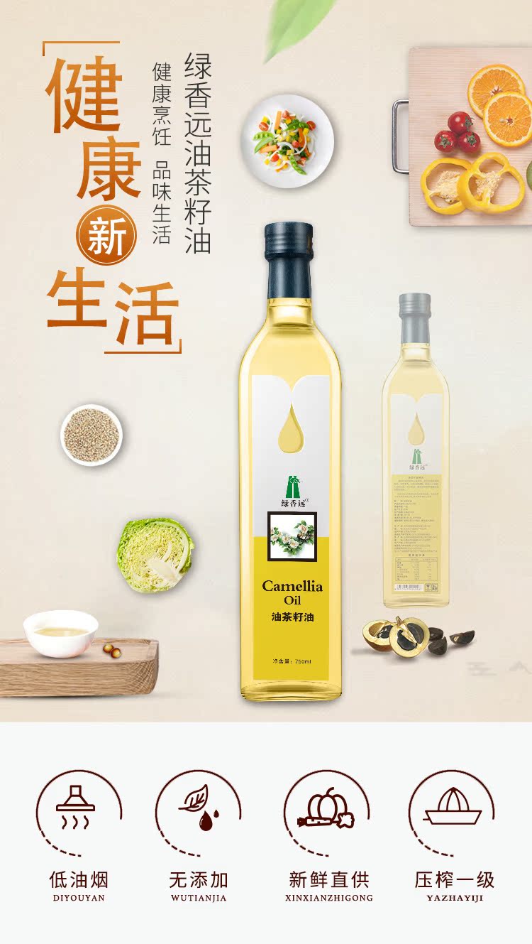 绿香远油茶籽油纯正农家山茶籽一级冷压榨婴儿食用茶树油750ml