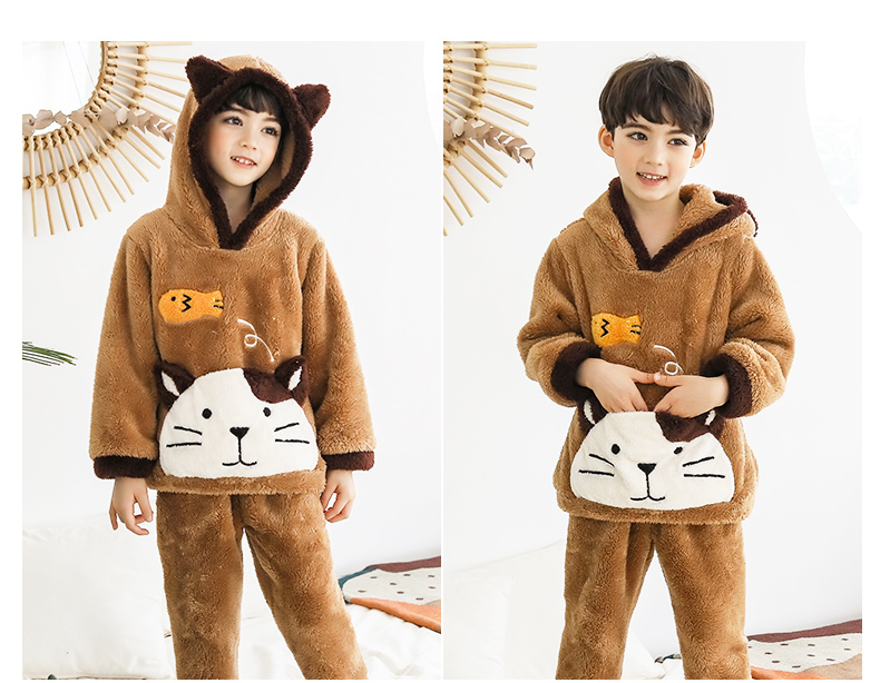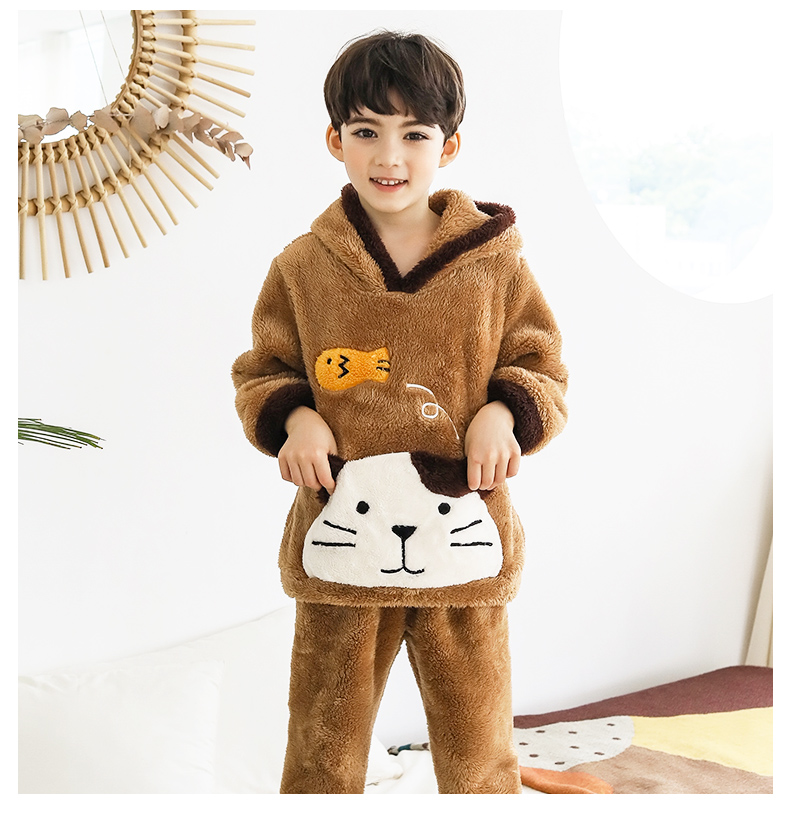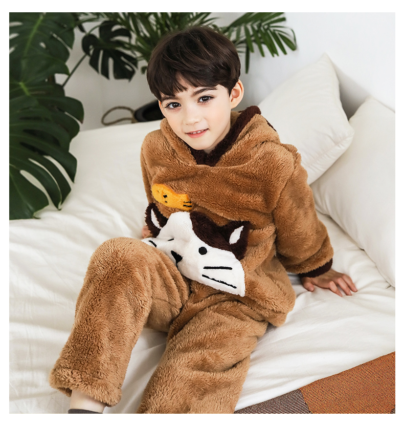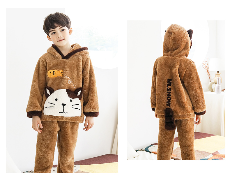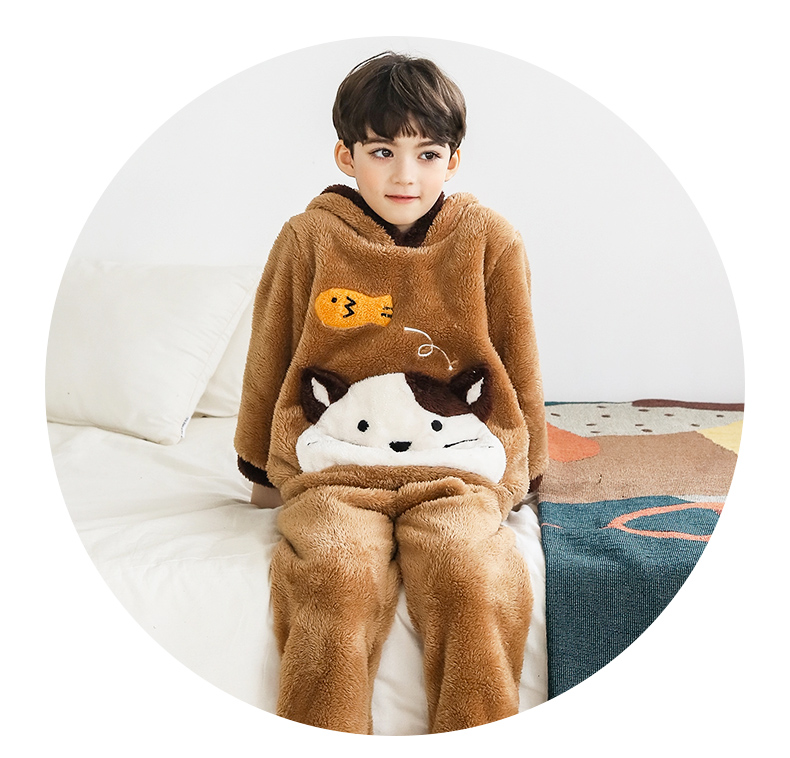 儿童睡衣秋冬季加厚款男童珊瑚绒宝宝男孩小孩法兰绒家居服中大童