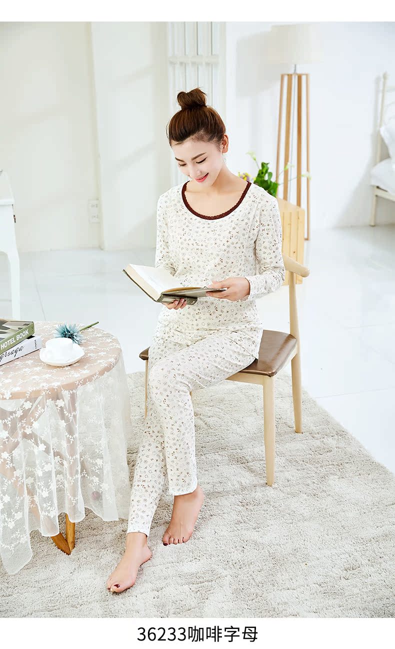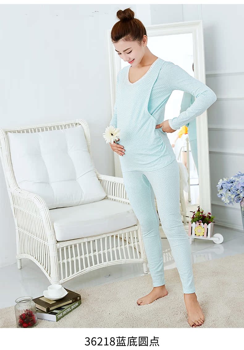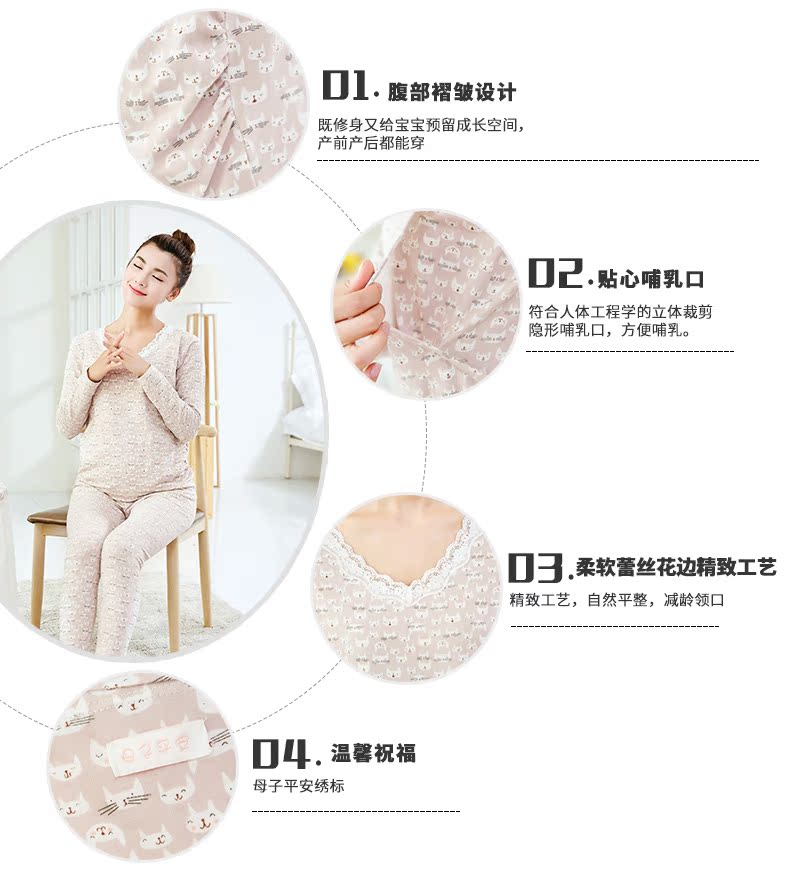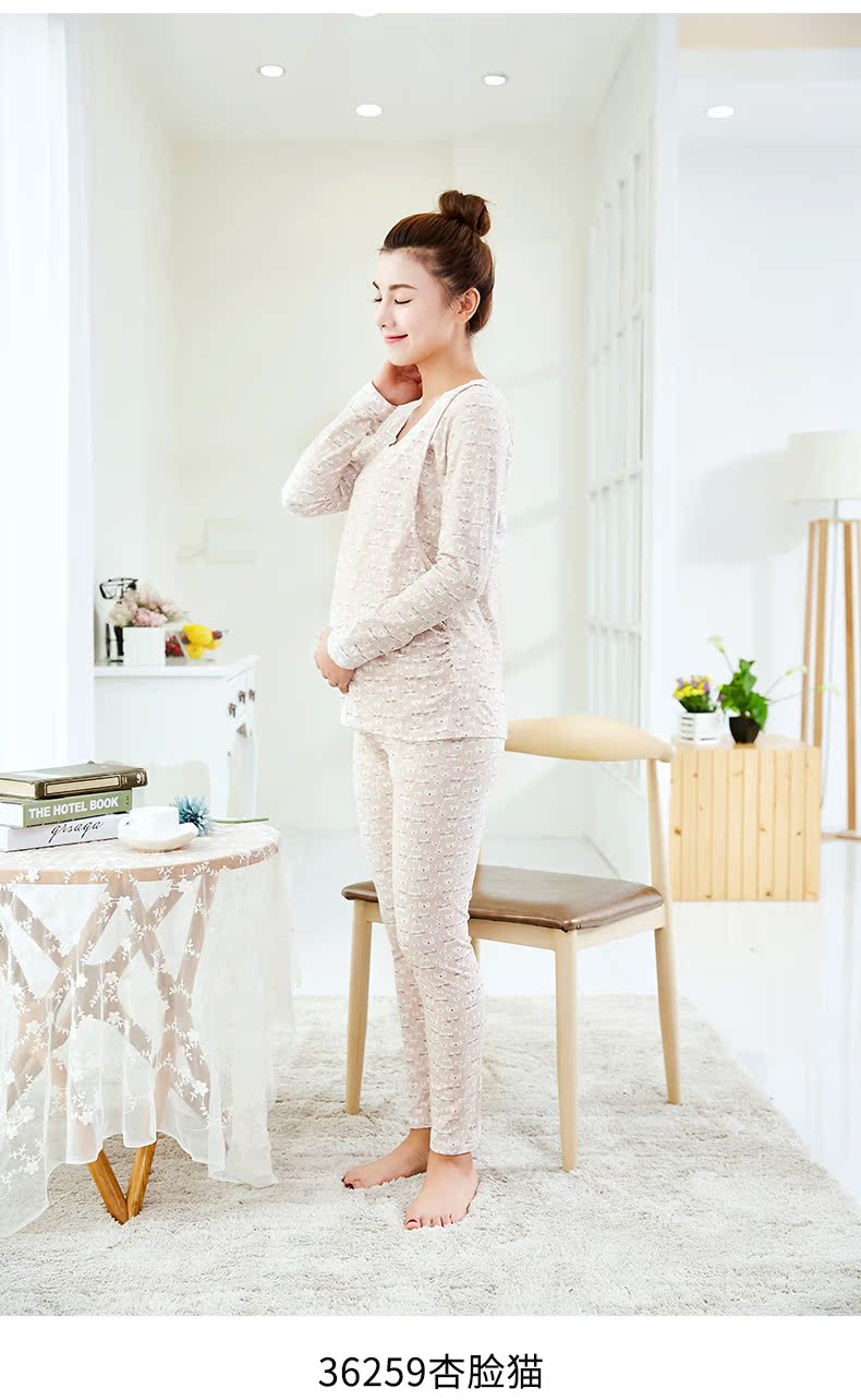 孕妇秋冬纯棉秋衣裤哺乳套装 产妇月子服长袖内衣睡衣哺乳家居服