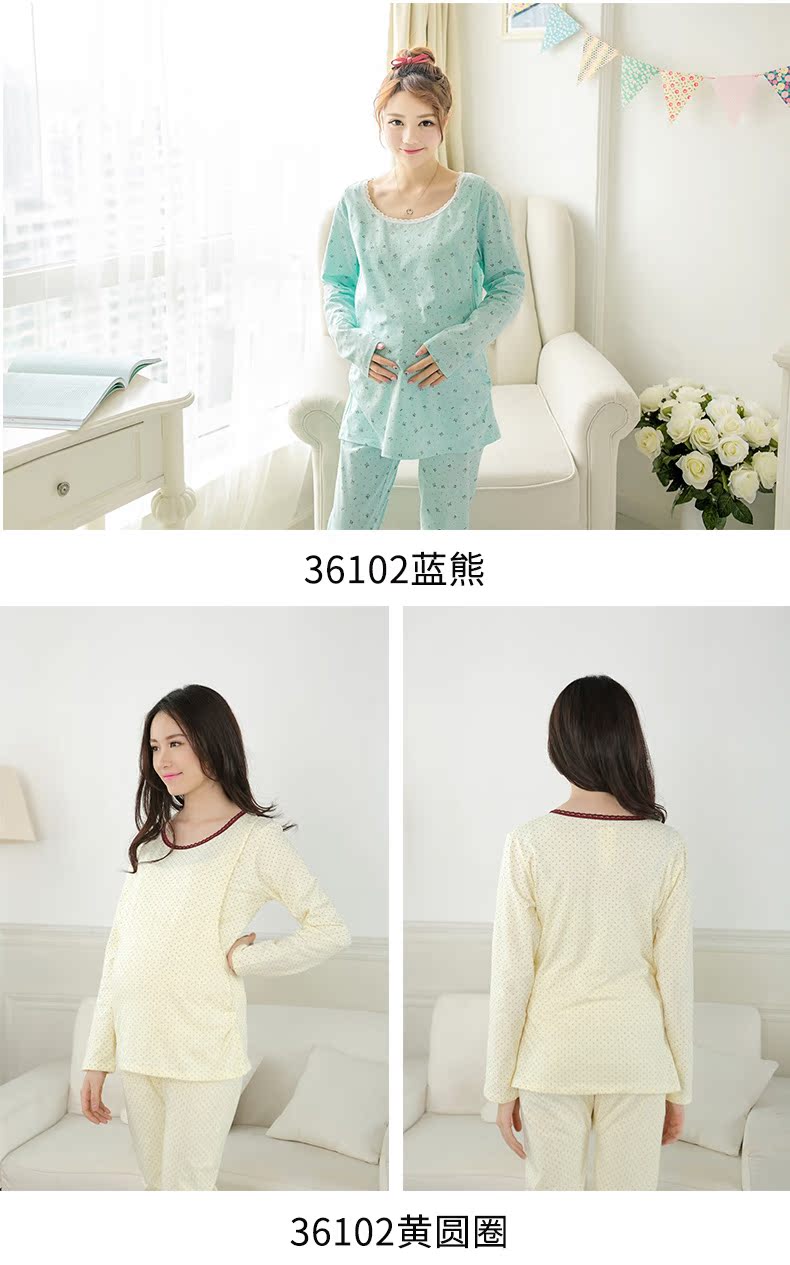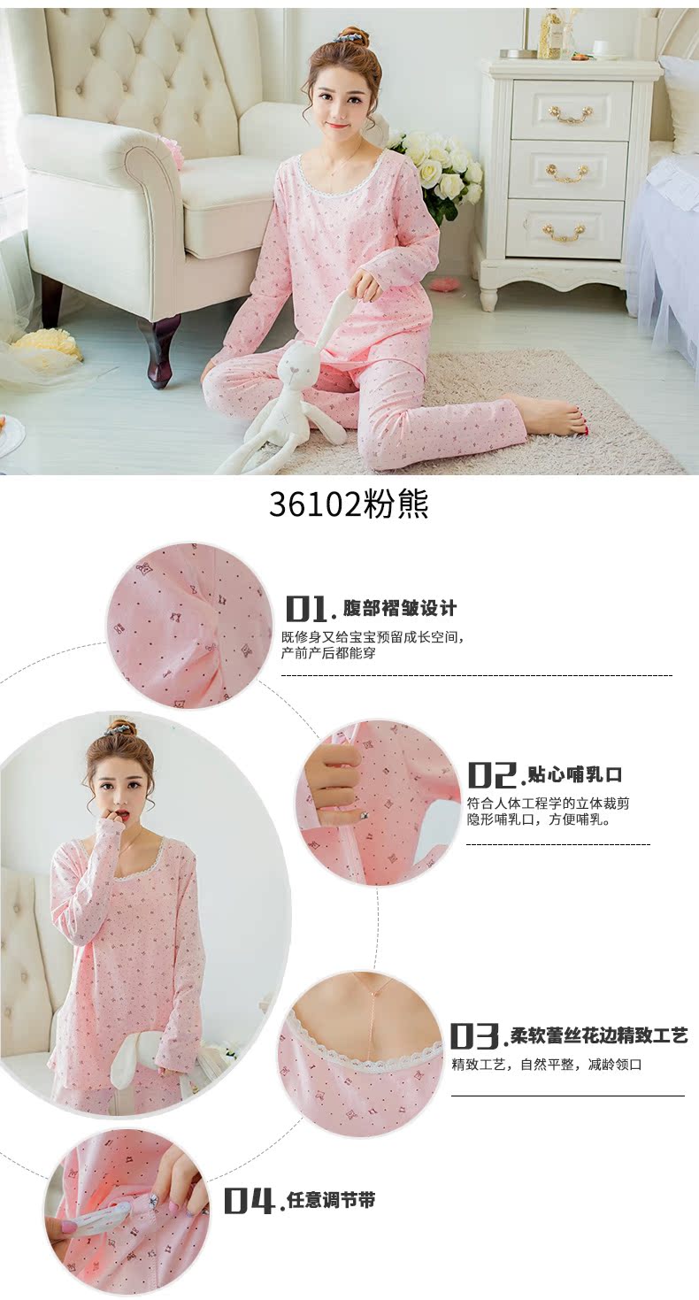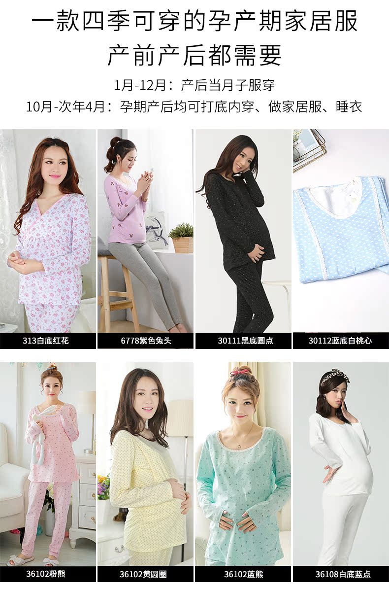 孕妇秋冬纯棉秋衣裤哺乳套装 产妇月子服长袖内衣睡衣哺乳家居服