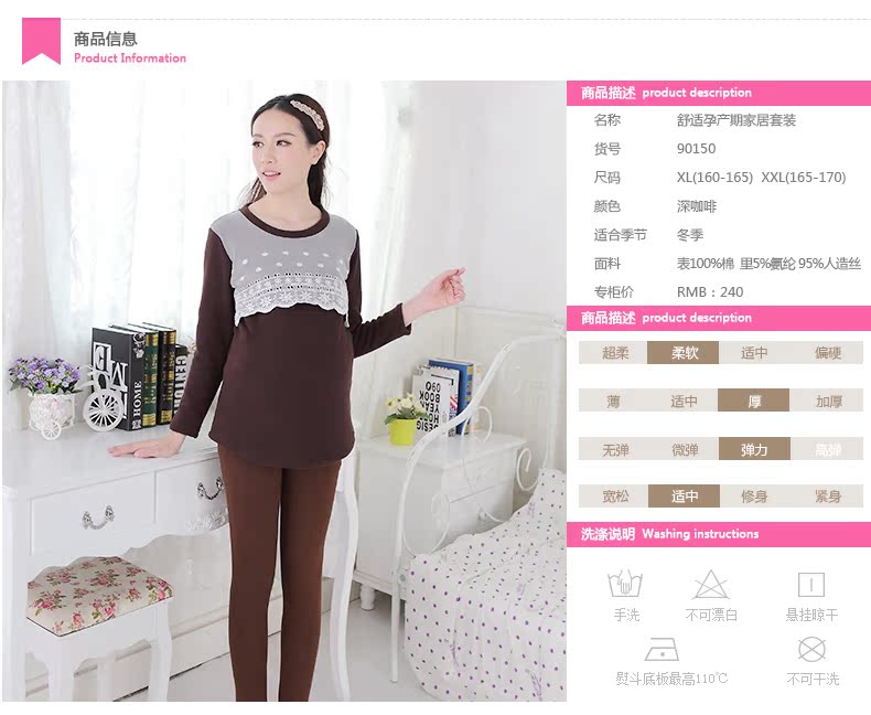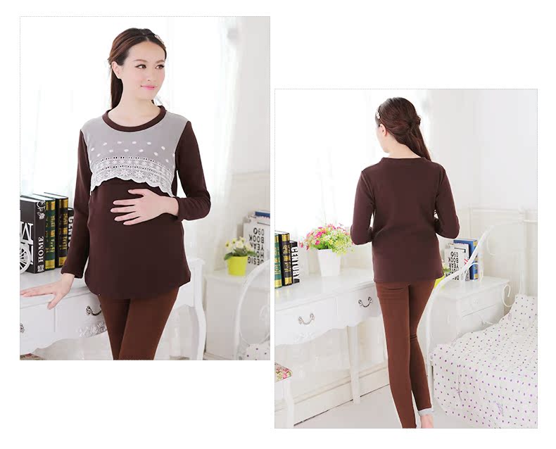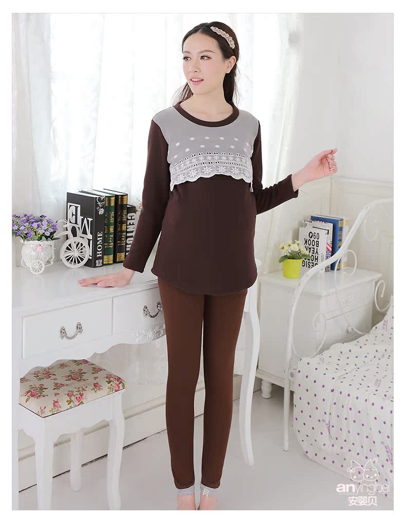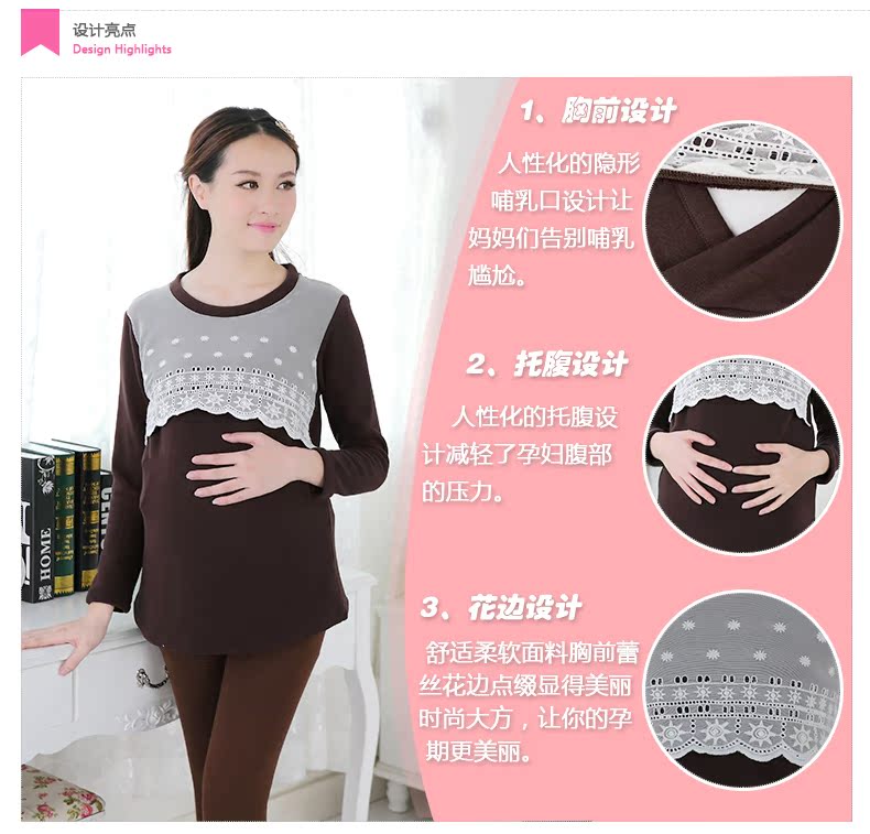 孕妇冬季加绒保暖哺乳衣 月子服产后出院衣服喂奶衣