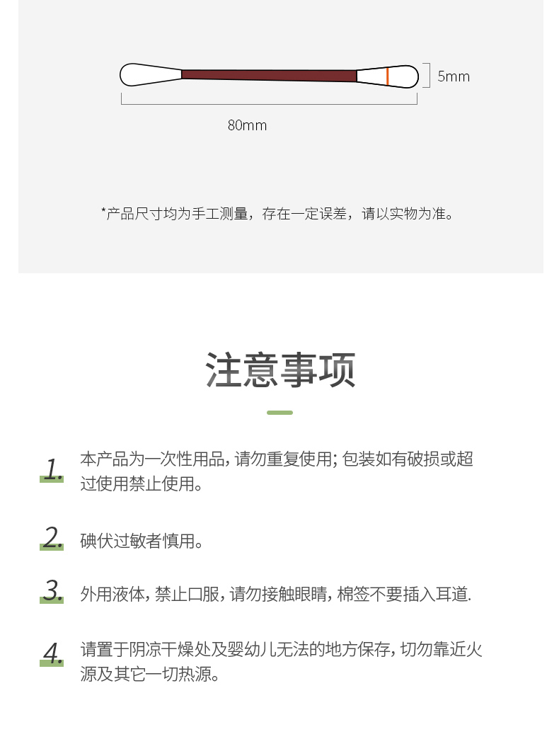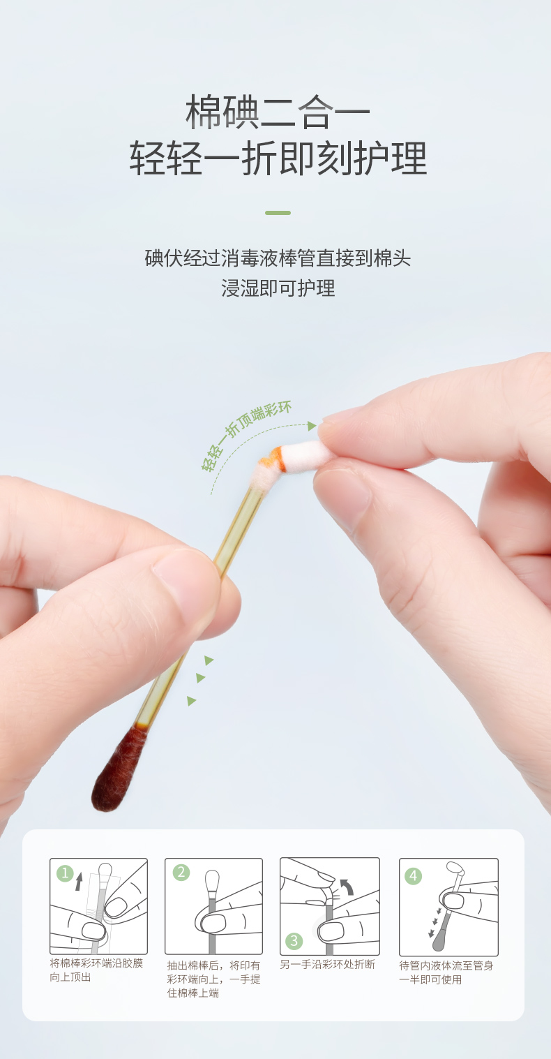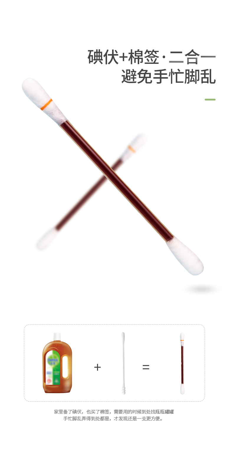 应急护理,独立包装,方便易用,多方适用,棉头柔软,不添加对人体有害物质,亲肤不刺激,消毒护理,一支搞定。