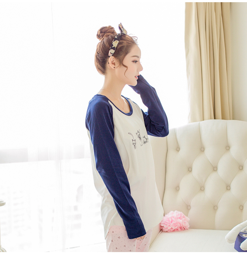 孕妇装产后长袖哺乳上衣薄款秋冬季外出时尚大码月子服喂奶衣秋衣