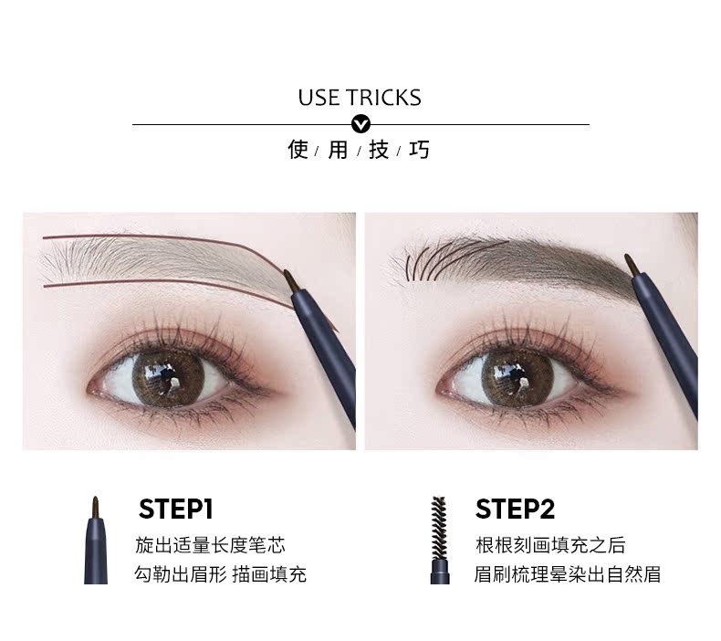 【拍3支】旋出式笔头和高密度眉刷,双头设计,一笔两用,细芯勾勒,精雕眉型,易上色,反复描画不结块,防水防汗不晕染【赠运费险】