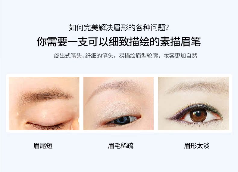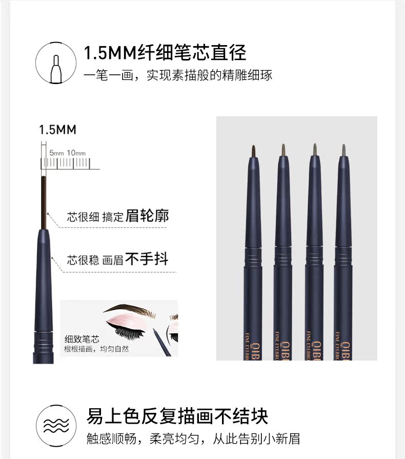 眉笔女正品不脱色持久防水超细头琦悦诗推荐防汗自然双头初学专用