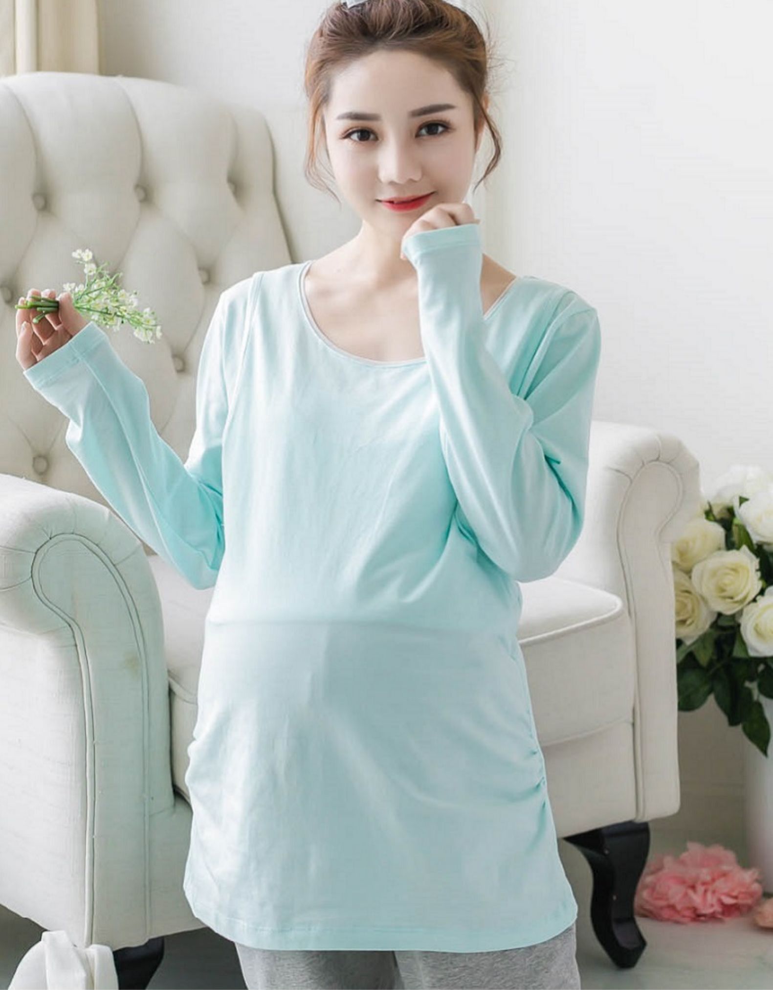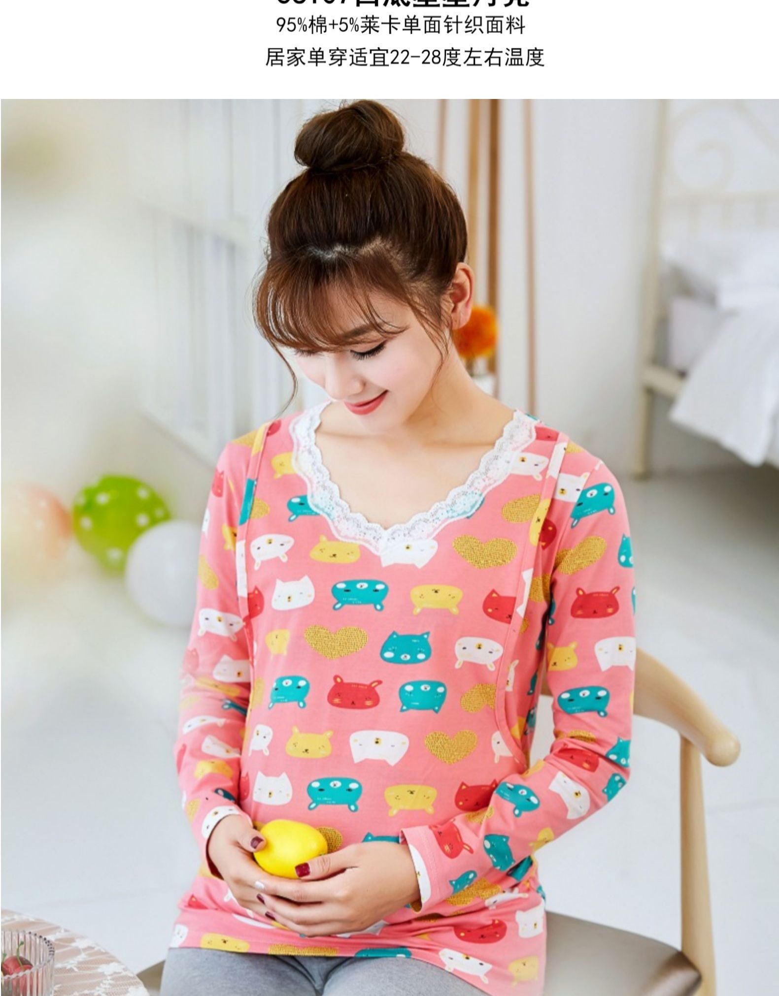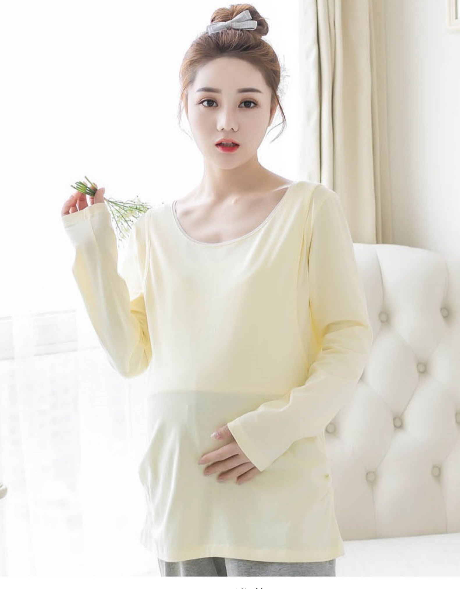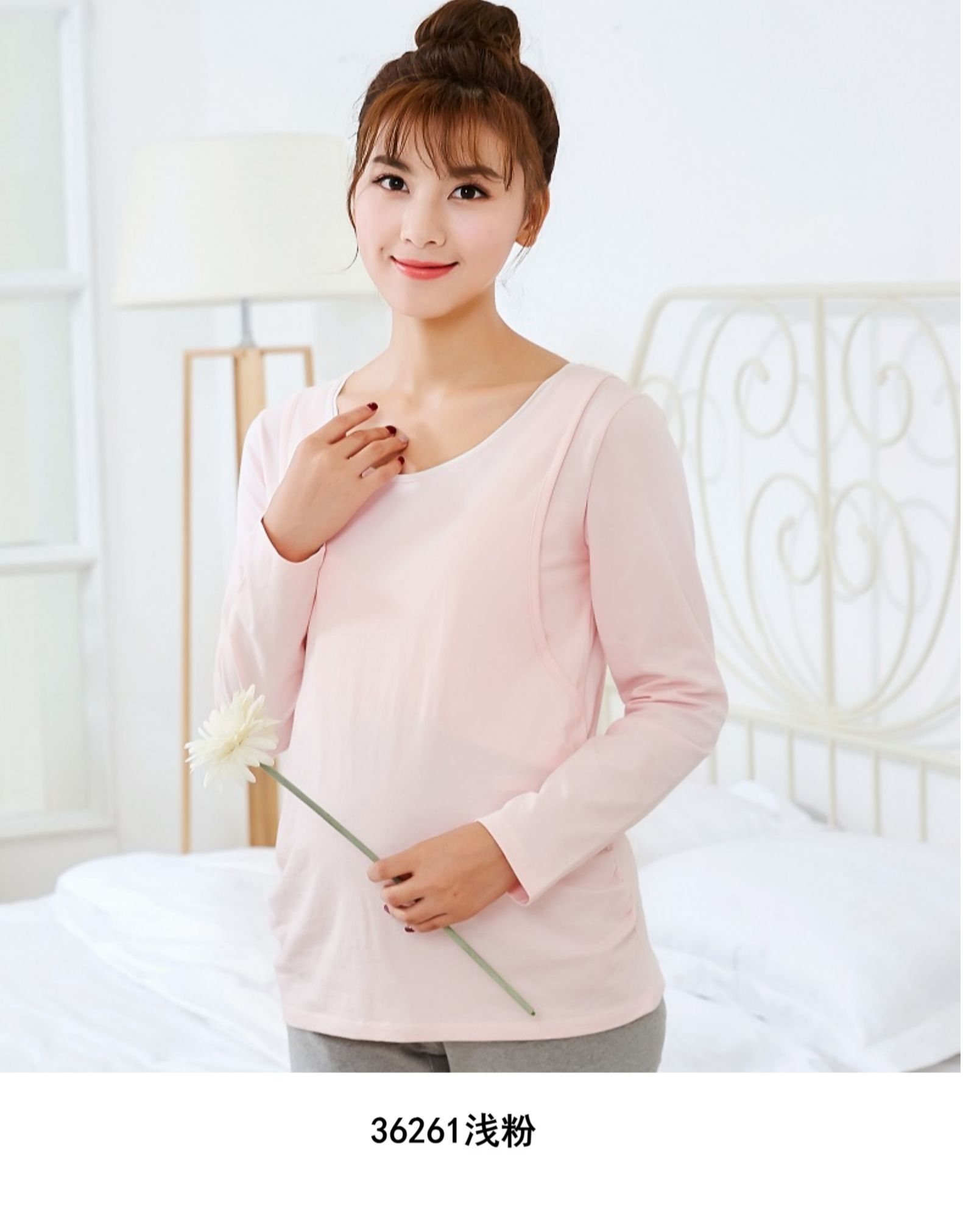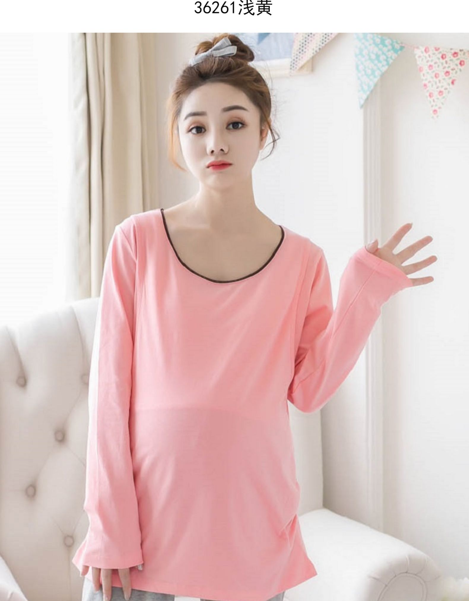 2019秋冬新款孕妇T恤棉质喂奶衫打底衣长袖清新糖果色哺乳T恤上