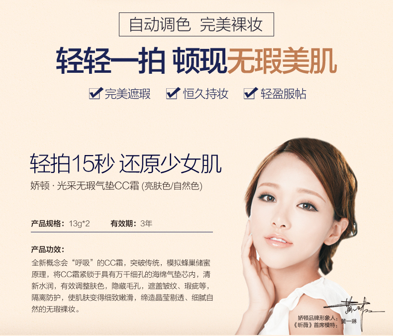 娇顿光采无瑕气垫CC霜 持久遮瑕隔离粉底液底妆不卡粉抖音同款