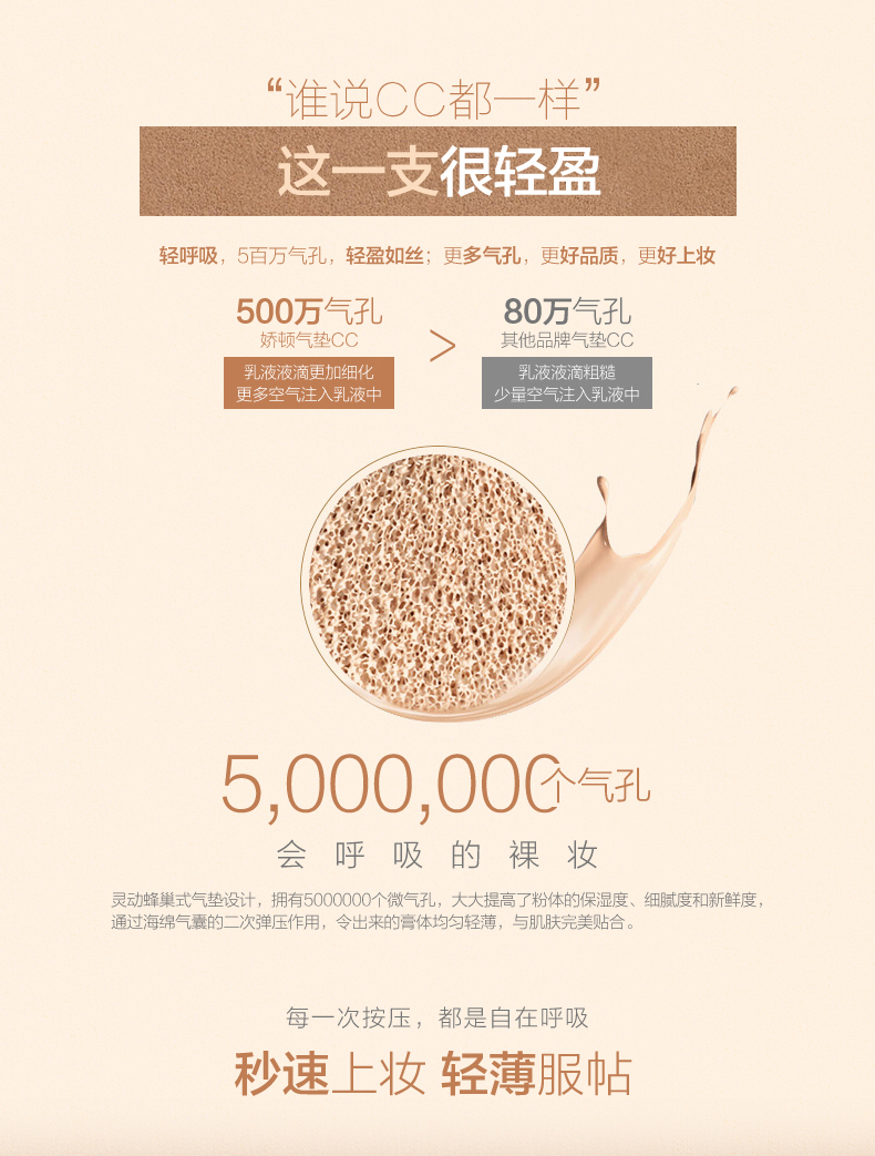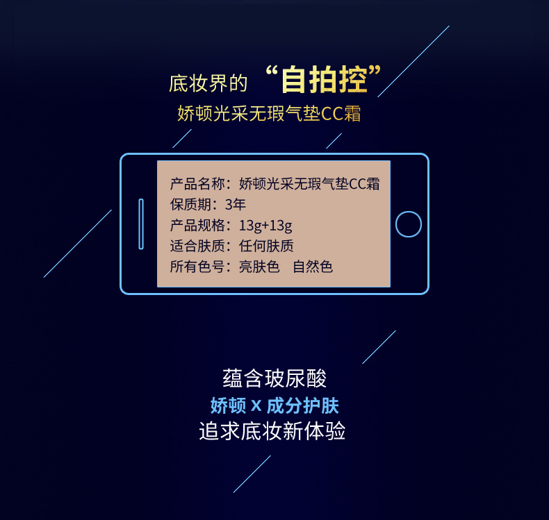 抖音同款娇顿气垫CC强势登场!不卡粉!天然植物提取精华,增强皮肤弹性,舒缓保湿修护,轻盈服帖,持久不脱妆,轻轻一拍,巨遮瑕巨补水!靠近再近也完美,娇顿完美女人的选择【赠运费险】