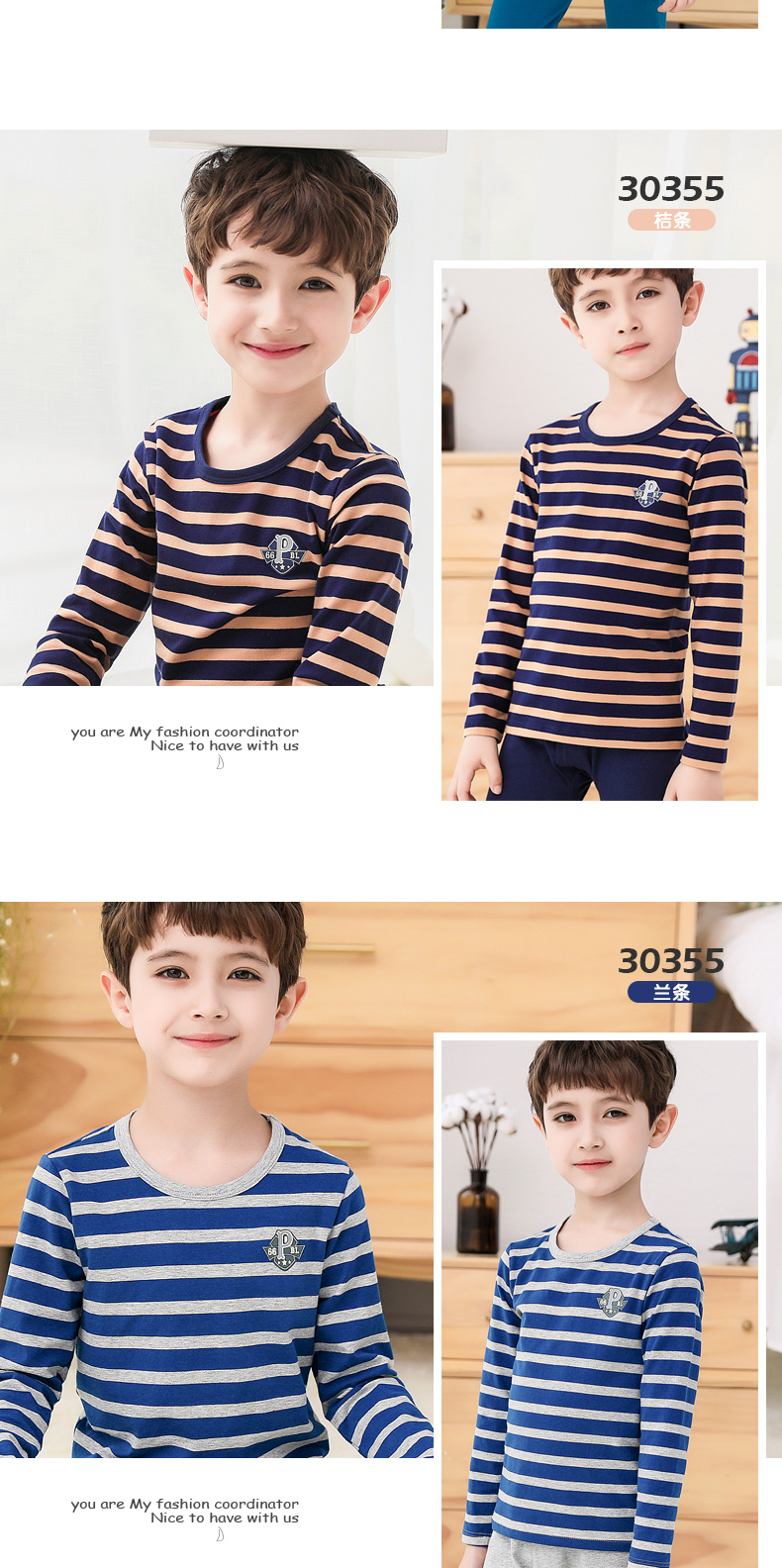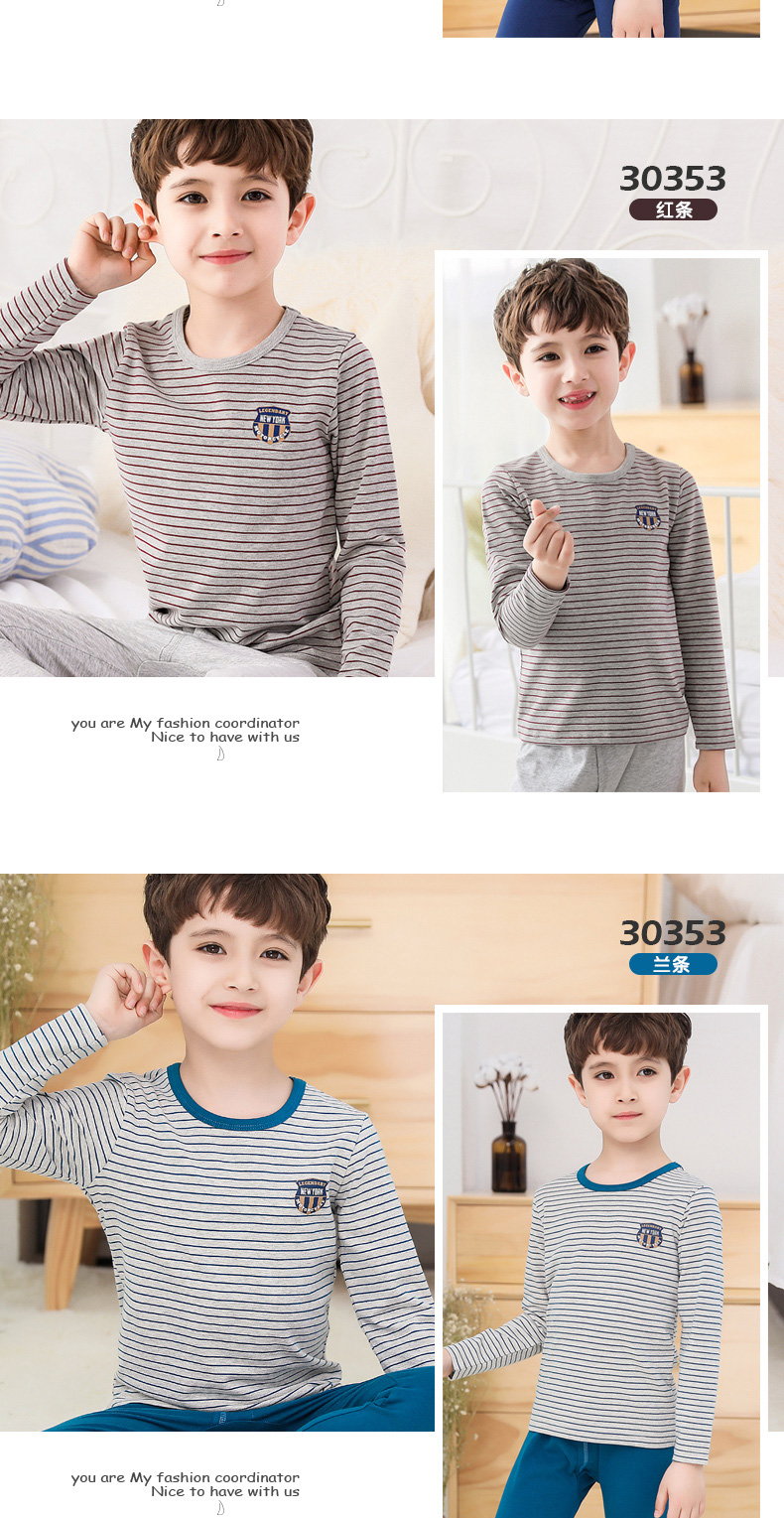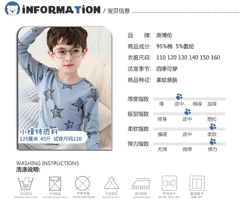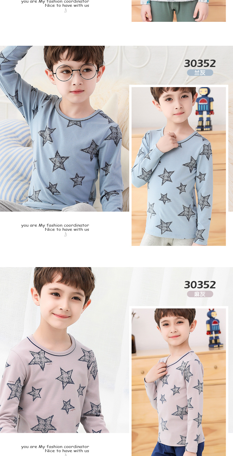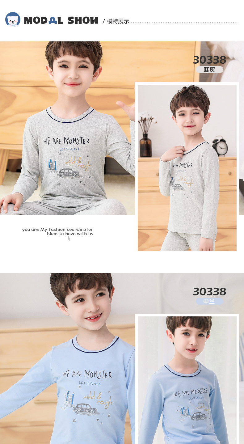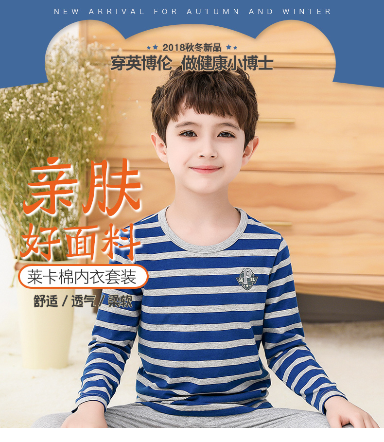 英博伦儿童内衣套装莱卡纯棉毛衫男童保暖秋衣秋裤薄款中大童宝宝
