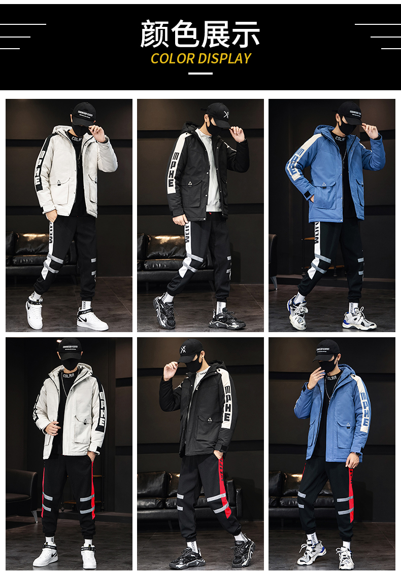 棉衣男士运动休闲套装冬季外套棉服韩潮流加绒加厚搭配帅气棉袄D