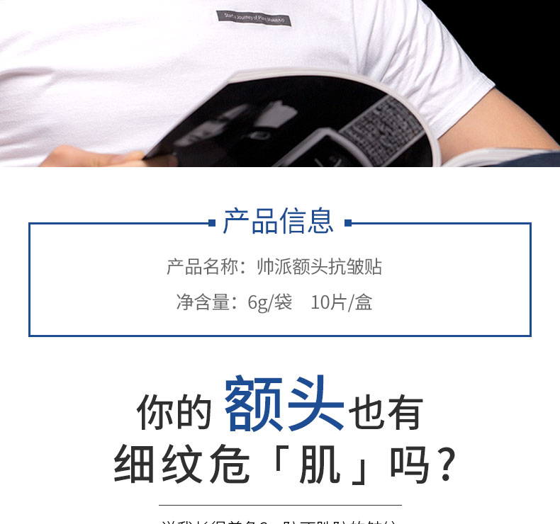 帅派平滑额纹抗皱贴淡化额头川字纹法令纹皱纹抬头纹面膜男生正品