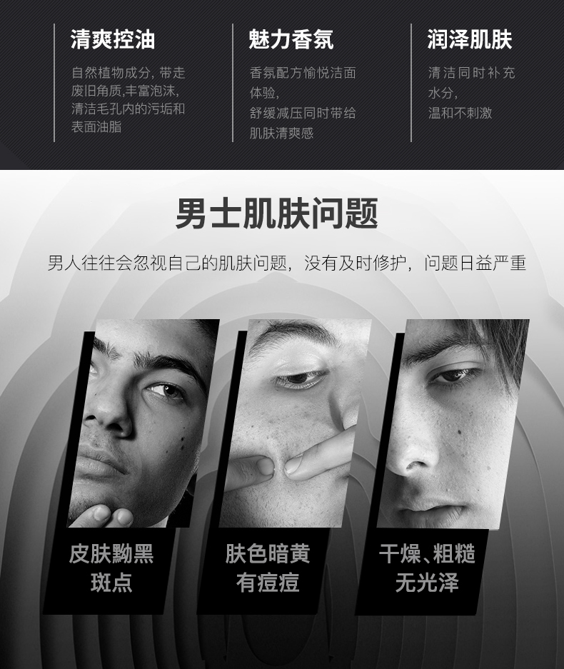 香味共和国古龙香氛男士专用火山岩控油清痘洗面奶保湿护肤