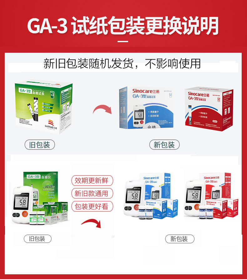 三诺血糖试纸100片血糖测试仪家用,全自动GA-3免调码糖尿病血糖仪,血糖仪新旧包装随机发货,试纸效期2021年。