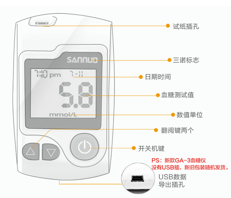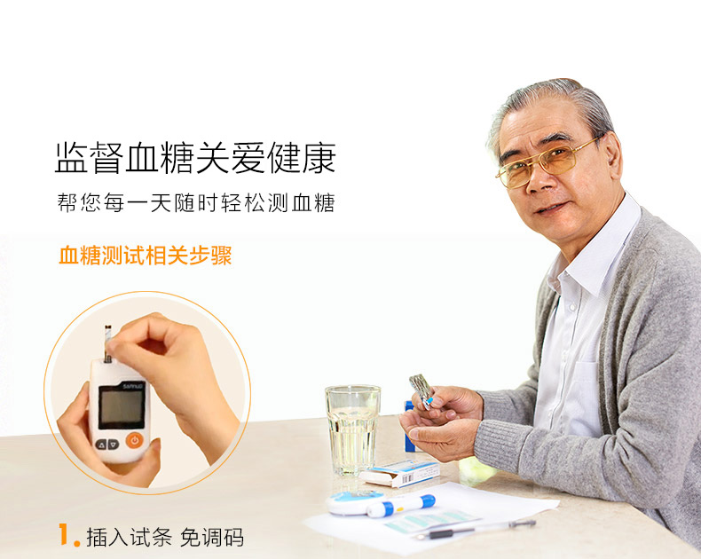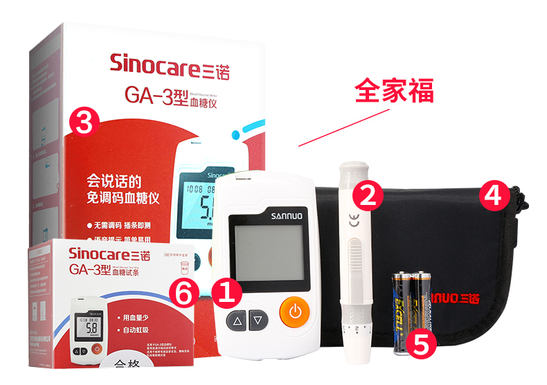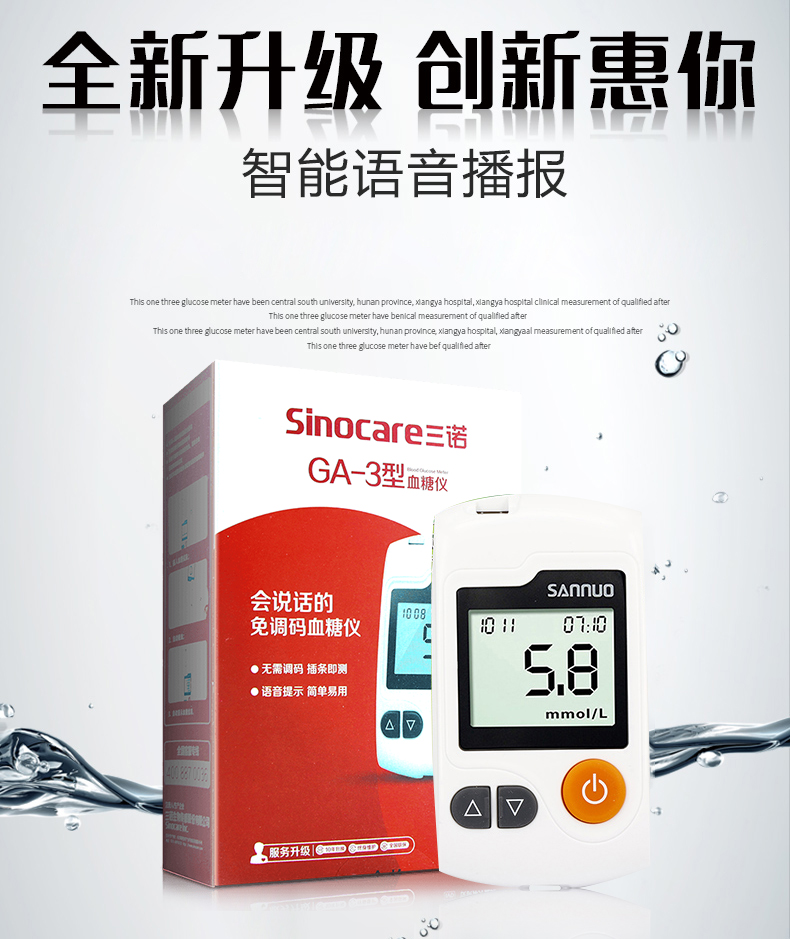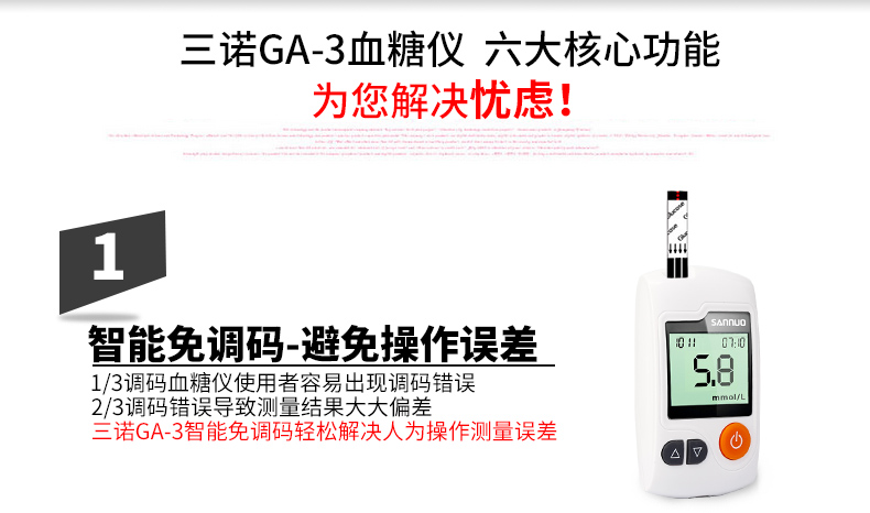 三诺血糖试纸100片血糖测试仪家用 全自动GA-3免调码糖尿病血糖仪