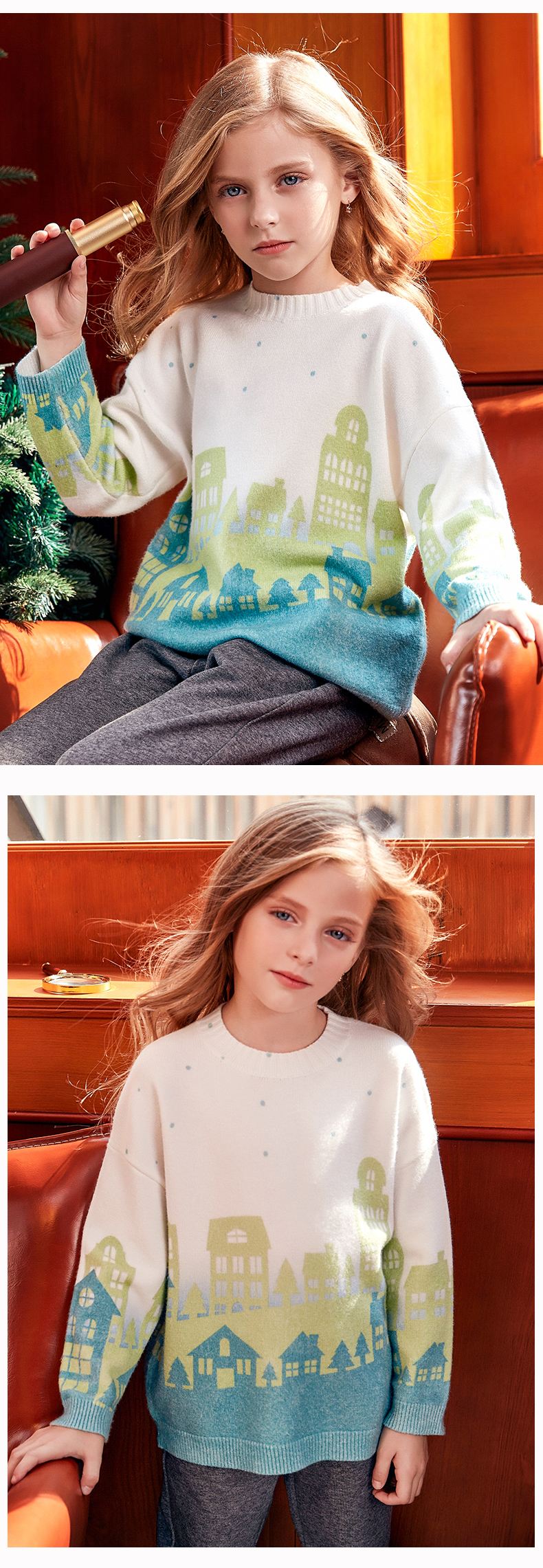lysucs儿童圣诞毛衣女童毛衣2019新款洋气外穿男童毛衣套头秋冬款