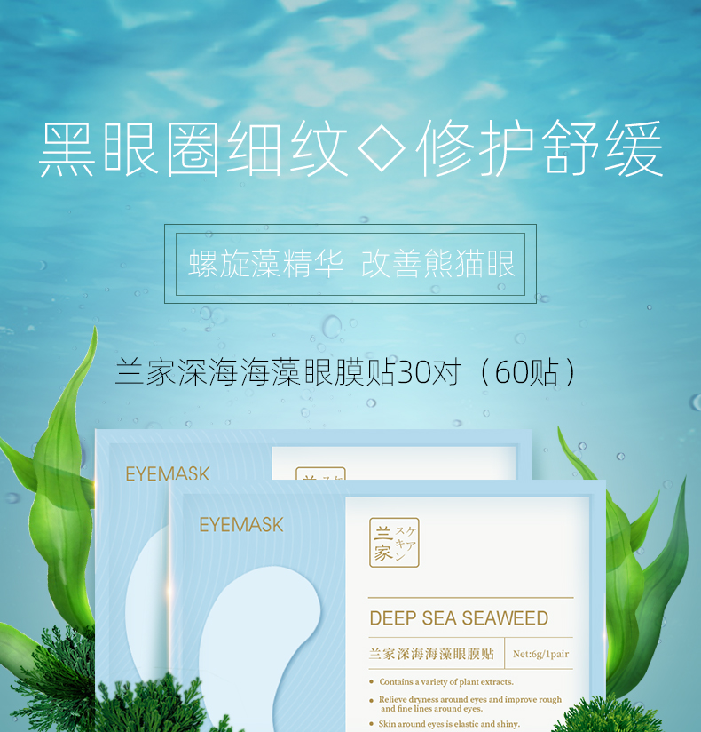 兰家海藻眼膜贴30对去淡化细纹黑眼圈补水保湿学生紧致旗舰店正品