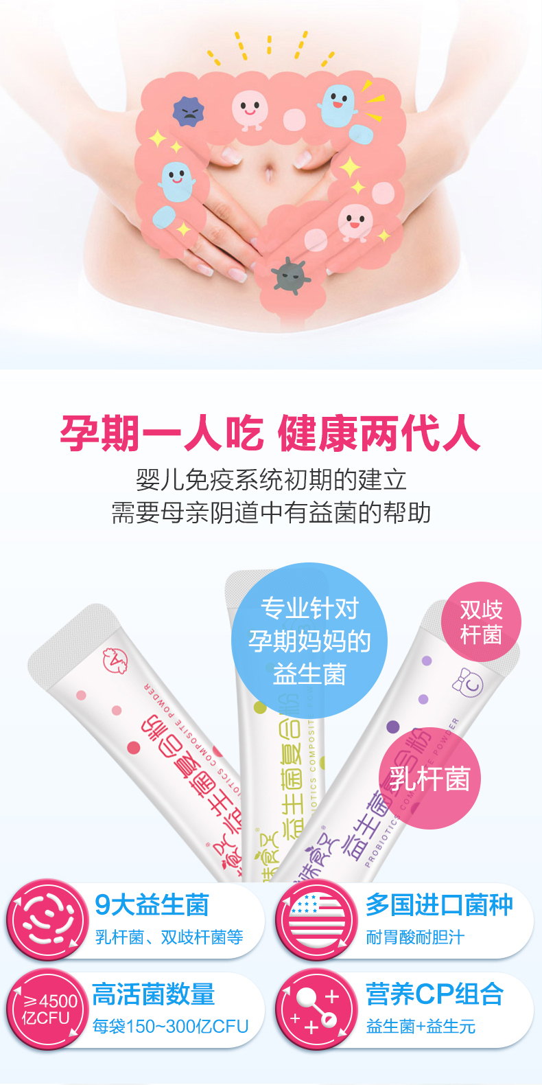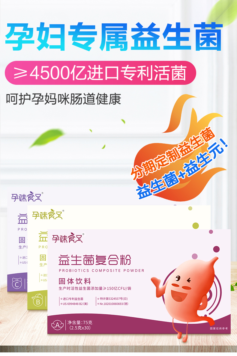 孕味食足孕妇益生菌粉 怀孕期专用肠胃肠道益生元调理冻干粉冲剂