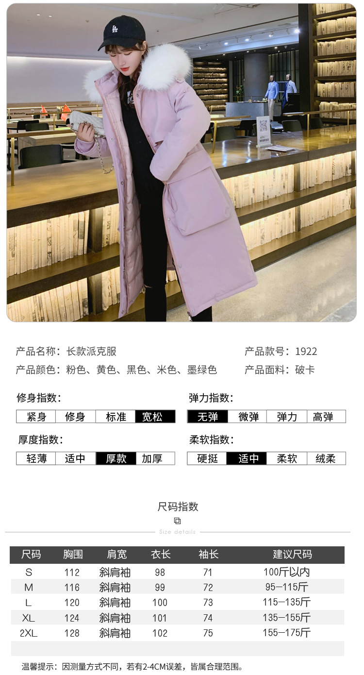 2019新款派克羽绒棉服加厚韩版宽松学生过膝长款棉衣冬季外套女袄