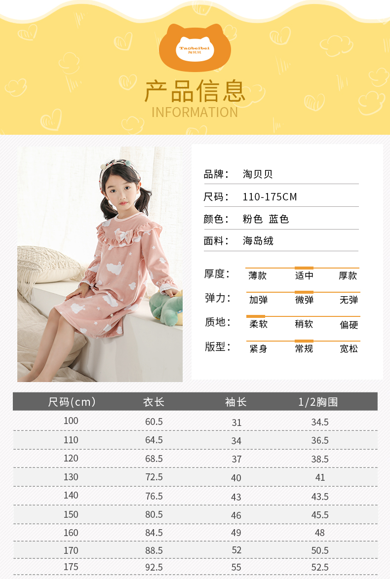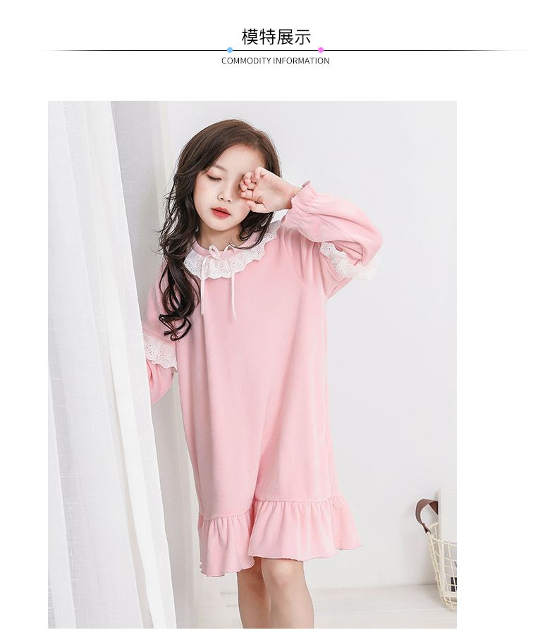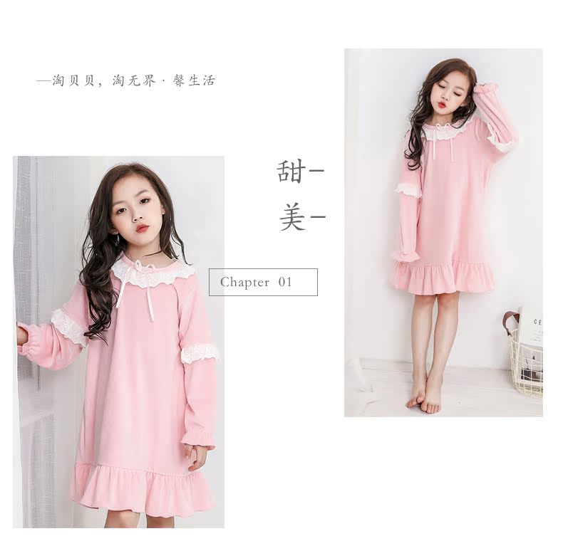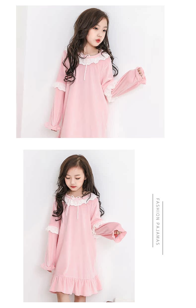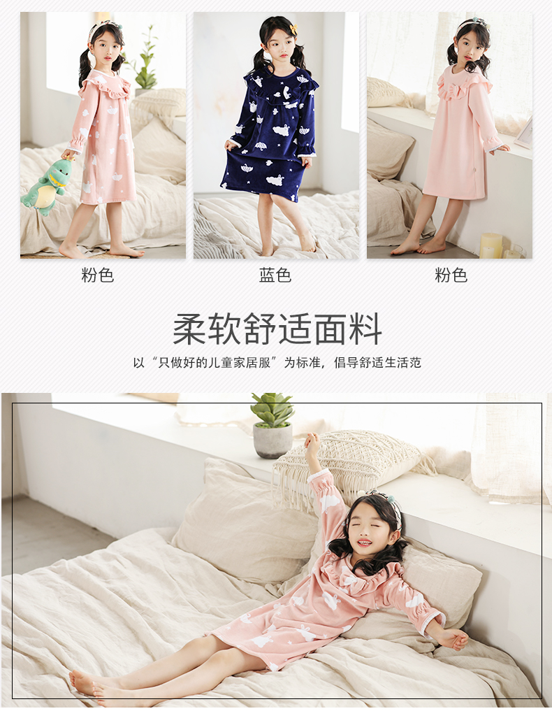 淘贝贝女童睡裙秋冬款儿童睡裙女长袖女孩法兰绒珊瑚绒睡裙公主